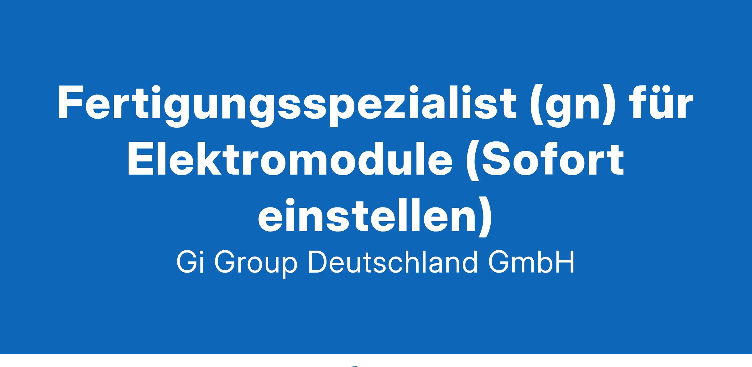 Fertigungsspezialist (gn) für Elektromodule (Sofort einstellen)