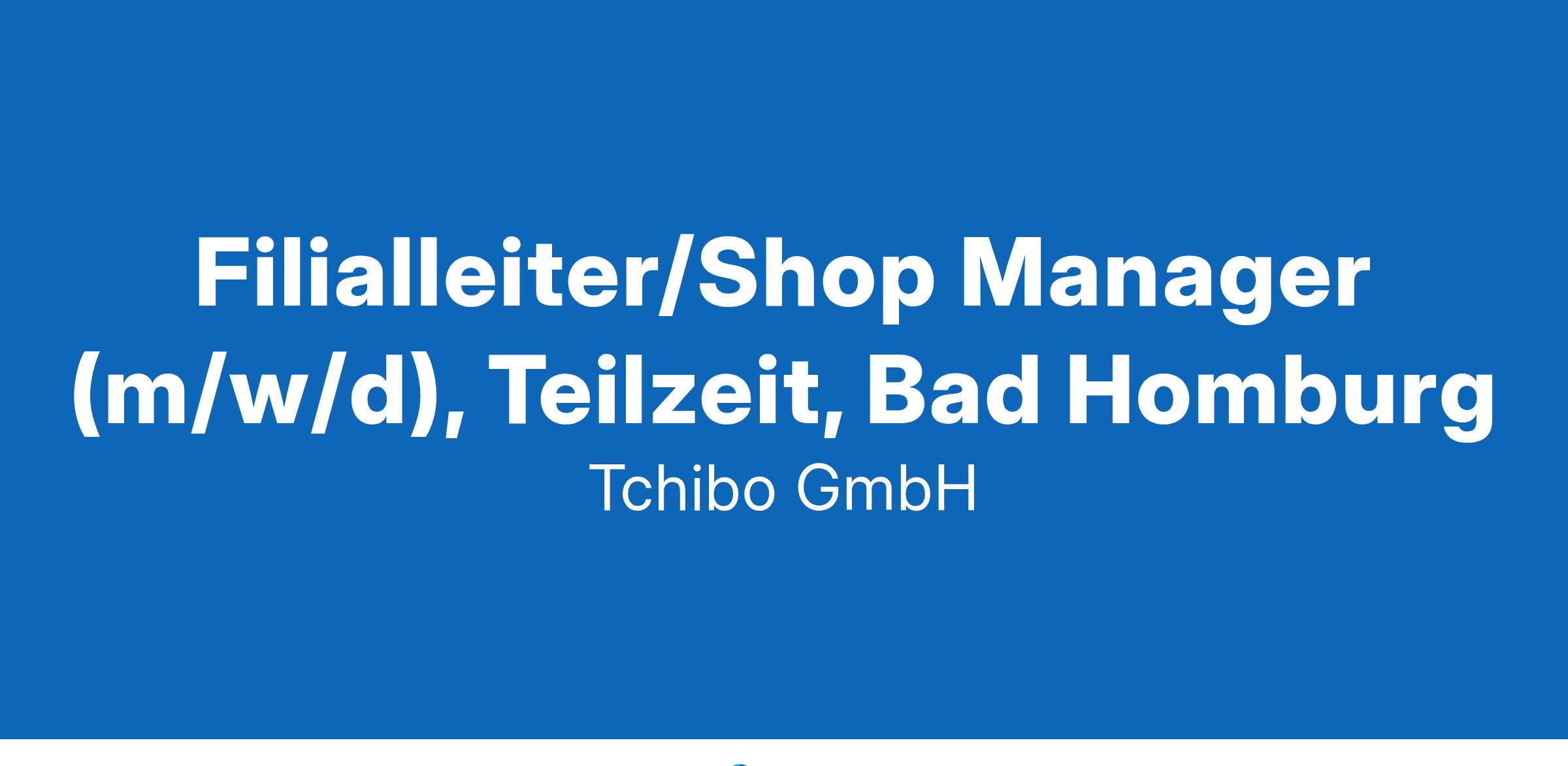 Filialleiter/Shop Manager (m/w/d), Teilzeit, Bad Homburg Wir bleiben anders. Du auch? In unseren Shops sind wir ganz eng mit unseren Kundinnen und Kunden verbunden und sprechen direkt und persönlich mit ihnen. Wir schaffen durch unseren persönlichen Kontakt, mit Kompetenz, Service und positiver Energie außergewöhnliche Einkaufserlebnisse. Vielfalt, Vertrautheit und ein kollegiales Umfeld – all das zeichnet unsere Tchibo Familie aus. Komm an Bord! Deine Aufgaben: Du machst mit uns den Unterschied.Diese Stelle ist unbefristet und in Teilzeit zu besetzen.In unserem Shop gibst du der Marke Tchibo ein Gesicht und das berühmte Lächeln von Tchibo. Dass sich unsere Kundinnen und Kunden hier wohlfühlen, ist deine wichtigste Mission.Mit Leidenschaft übernimmst du als Filialleiter / Shop Manager (m/w/d) die Verantwortung für deinen Shop und die Mitarbeitenden.Du führst dein Team , steckst deine Mitarbeitenden mit deiner Begeisterung für den Verkauf an und gibst ihnen regelmäßig Feedback .Die Umsetzung unserer Verkaufsstrategie managst du in Eigenregie und bist dafür verantwortlich, dass die von dir gesetzten Verkaufs- und Tchibo Ziele erreicht werden.Du stellst den reibungslosen Ablauf sowie eine optimale Warenpräsentation in deinem Shop sicher. Dein Profil: Du erfindest uns immer wieder neu.Du liebst den Handel und hast idealerweise erste Berufserfahrung als Führungskraft gesammelt.Du gehst gerne auf Menschen zu, bist offen für Neues und arbeitest selbständig .Durch deine hohe Empathie bist du in der Lage, andere Menschen zu begeistern . Eigenverantwortung , Flexibilität, Engagement und ein Verständnis für Zahlen sind Eigenschaften, die dich auszeichnen. Deine Vorteile: Gemeinsam bleiben wir anders.Du erhältst ein attraktives Gehalt, Urlaubs- und Weihnachtsgeld sowie einen Rabatt für Mitarbeitende auf alle Tchibo Artikel. Außerdem profitierst du von einem Fahrtkostenzuschuss für öffentliche Verkehrsmittel und dem Leasing eines JobRads. Mit unseren flexiblen Teilzeitmodellen und Familienservice -Angeboten vereinbarst du erfolgreich Beruf und Privatleben.Als Kaffee-Liebhaber schenken wir dir monatlich Tchibo Kaffee deiner Wahl zum privaten Genuss. Während der Arbeit bekommst du kostenlose Getränke .Deine Erholung ist uns wichtig: Genieße deine 36 Urlaubstage im Jahr. Bleib fit und gesund – profitiere von Rabatten bei Tchibo Fitness. Außerdem fördern wir dich mit Trainings und Weiterbildungen , zum Beispiel einer Barista Ausbildung.Immer gut abgesichert bist du mit unserer Unfallversicherung , die auch für den privaten Bereich gilt. Du möchtest Teil der Tchibo Familie werden? Dann bewirb dich sofort! Es geht superschnell: registrieren, Kontaktdaten eingeben, Fragen beantworten – fertig. Ganz ohne Anschreiben! Oder komm vorbei und bewirb dich vor Ort im Shop. Du hast noch Fragen? Kontaktiere einfach unseren Recruiting-Support unter +49 40 6387 3353. ID 55554