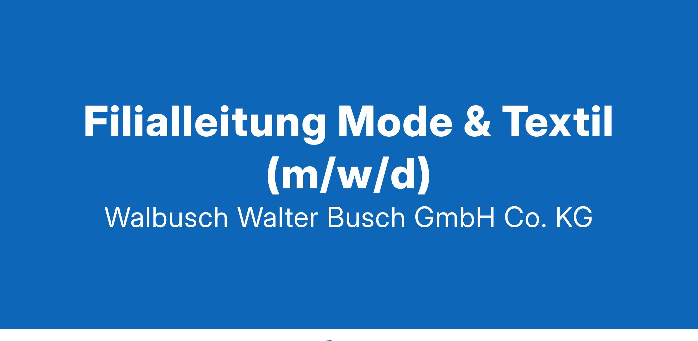 Filialleitung Mode & Textil (m/w/d) Unsere Zielgruppe kennen und studieren wir genau, ihre Wünsche und Bedürfnisse – und du lernst sie persönlich kennen! Deine Leidenschaft liegt im Verkauf und du brennst für eine gute Modeberatung. Walbusch ist für Menschen, die das Leben genießen, die aktiv sind und Design mit Funktion verbinden wollen. Wir leben die Beratung und wollen unseren Kund:innen ein Einkaufserlebnis bieten, dass sie begeistert und zur Stammkundschaft werden lässt. Wenn du nicht nur Verkaufstalent bist, sondern auch eine Leidenschaft für Führungsthemen mitbringst, bist du bei uns genau richtig. Ort: Magdeburg Arbeitsumfeld: ausschließlich vor Ort Art der Stelle: Full-time employee Was dich erwartet Deine Aufgaben Als Organisationstalent übernimmst du verantwortungsvoll die Steuerung und Verwaltung deiner Filiale und stellst einen reibungslosen Ablauf sicher. Du bist verantwortlich für die Führung deiner Mitarbeiter:innen und sorgst für eine effektive Personaleinsatzplanung. Du bist sicher im Umgang mit Kennzahlen und leitest daraus entsprechende Maßnahmen ab. Unser Warensortiment wird attraktiv von dir in Szene gesetzt - hier kannst du dein Gespür für Mode unter Beweis stellen! Dein Arbeitsumfeld Wir arbeiten stetig daran möglichst alle Filialen zu modernisieren und auf den neusten Stand zu bringen. LED-Technik, ansprechendes Ambiente, Wohlfühl-Atmosphäre und der perfekte Charakter, der zu unserer Mode passt, sind uns dabei wichtig. Auf unsere Kommunikation trifft das genauso zu, wir tauschen uns auf Augenhöhe aus und leben einen wertschätzenden Umgang zu jeder Tageszeit, an jedem Wochentag und egal auf welcher Position. Dein Team Teamwork makes the Dreamwork – klingt abgedroschen, ist aber so! In der Filiale wartet ein motiviertes Team, bestehend aus bis zu sechs Kolleg:innen, auf dich. Was dich auszeichnet Deine Qualifikation Wenn es um hochwertige Mode geht, fängt dein Herz an, höher zu schlagen. Dein Fokus liegt auf unseren Kund:innen und dein Ziel ist es, jede:n Einzelne:n bestmöglich zu beraten. Du hast ein Gespür für die Bedürfnisse deiner Mitmenschen und stehst deinem Team unterstützend und wegweisend zur Seite. Deine Persönlichkeit Du bist kommunikativ und gehst gerne auf Menschen zu, dabei bist du freundlich, gelassen und souverän. Du bist motiviert, flexibel und behältst auch in stressigen Zeiten und vor allem bei mehreren Kund:innen gleichzeitig einen guten Überblick. Deine Skills Du bringst bereits Berufserfahrung aus einer leitenden Funktion mit und verfügst über umfangreiche Erfahrung im textilen Verkauf. Außerdem bist du fit im Umgang mit gängigen Kennzahlen sowie MS Office. Höflichkeit, Gelassenheit und eine gute Intuition sind Teil deiner DNA und du beweist Gespür sowohl modisch als auch im Umgang mit Menschen. Deine Benefits - Altersvorsorge - Corporate Benefits - 6 Wochen Urlaub - verschiedene Weiterbildungs-möglichkeiten Auf unserer Karriereseite findest du eine Übersicht aller Benefits. Dein Kontakt Jessica Strehlow Talent Acquisition Manager (Inhalt entfernt) (Inhalt entfernt) Das ist die Walbusch-Gruppe 1934 gegründet, in dritter Generation geführt und dennoch am Puls der Zeit! Unsere Unternehmensgruppe beheimatet drei Marken, zahlreiche Berufsfelder, Tätigkeitsbereiche und über tausend Mitarbeiter:innen. Neben Walbusch zählen hierzu auch unsere Marken Avena sowie Mey & Edlich. Als Familienunternehmen wissen wir: Ein Unternehmen ist nur so gut wie seine Mitarbeitenden. Werde Teil unserer Gruppe und verbinde Tradition mit Zukunft. Weitere Informationen erhältst du auf unserer Karriereseite: Walbusch-Gruppe