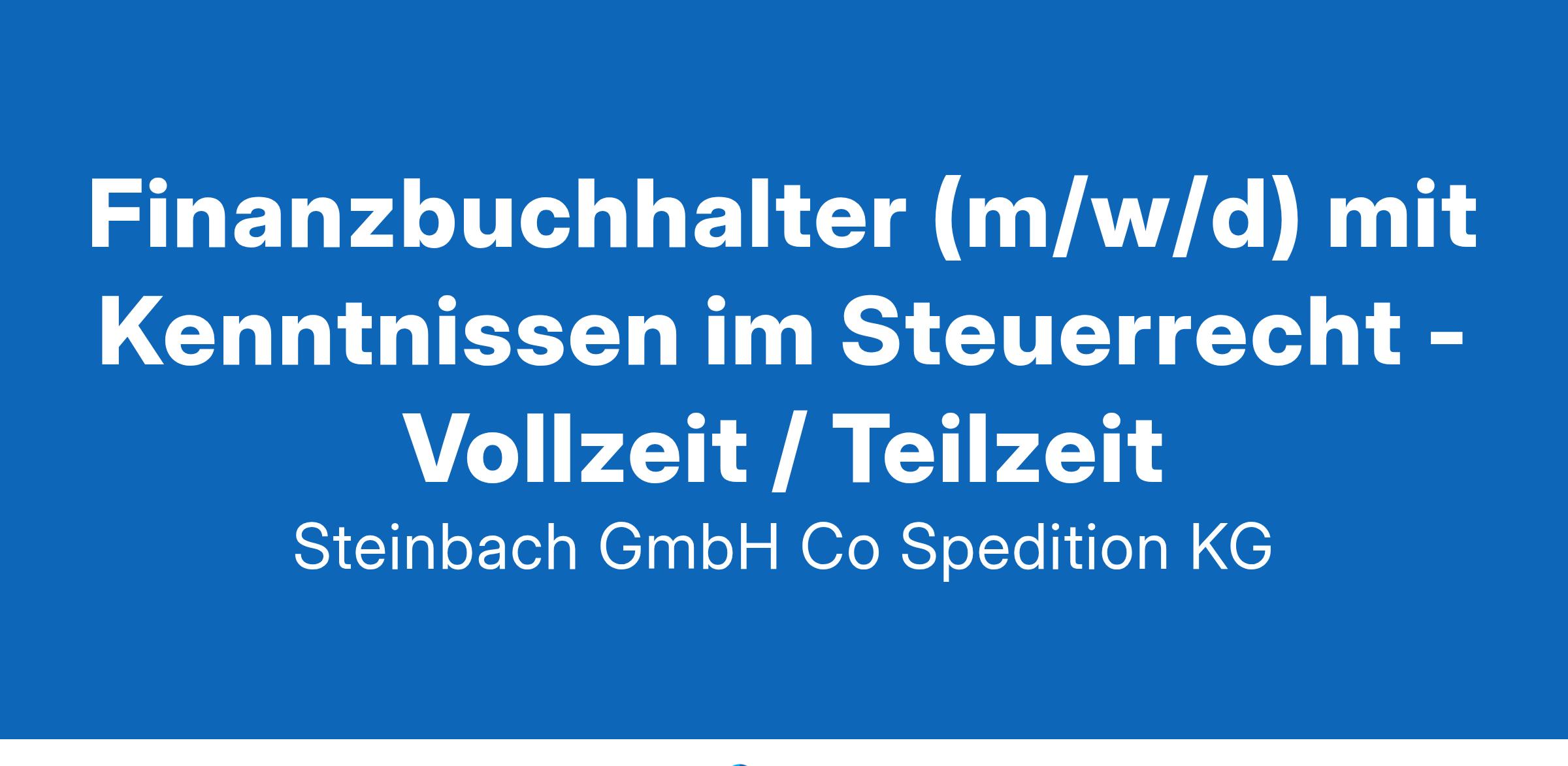 Über die Steinbach GmbH & Co Spedition KGSeit 1963 steht das Familienunternehmen Steinbach GmbH & Co Spedition KG als Experte für Logistik und Transporte. Unser Erfolg beruht auf engagierten und qualifizierten Mitarbeitern, die Tag für Tag Außergewöhnliches leisten. Zur Verstärkung unseres Teams suchen wir eine motivierte und detailverliebte Buchhaltungsfachkraft (m/w/d), die unsere Leidenschaft für Genauigkeit und Effizienz teilt.Wir setzen auf langfristige Beziehungen und sind stolz darauf, viele unserer langjährigen Mitarbeiter selbst ausgebildet zu haben.Finanzbuchhalter/-in (m/w/d) mit fundierten Kenntnissen im Steuerrecht in Vollzeit oder Teilzeit gesucht! Bayreuth - Festanstellung- ab sofortDas erwarten wir Finanzguru: Bearbeite die laufende Finanzbuchhaltung Detektiv der Konten: Stimme Konten ab, kläre offene Posten und sorge für Klarheit durch Mahnungen und Saldenbestätigungen Workflow-Wizard: Wickle Rechnungen über unseren elektronischen Workflow ab und halte den Zahlungsverkehr reibungslos am Laufen Hüter der Debitoren- und Kreditorenkonten: Überwache die Debitoren- und Kreditorenkonten und behalte den Überblick über dein Herrschaftsgebiet Budget-Buddy: Unterstütze bei der Optimierung interner ProzesseDas erwartet Dich Vergütung: Attraktive Vergütung und umfassende Sozialleistungen, steuerfreier Warengutschein, Jobrad... Modernität: Ein modernes Arbeitsumfeld, in dem Du Dich wohlfühlen wirst Wir sind ein gutes Team: Regelmäßige Teamevents und Trainings intern und extern gehören bei uns dazu! Du kannst Dich auf Firmenfeste, Grillevents oder Teamtage freuen Entwicklung: Flache Hierarchien, kurze Entscheidungswege sowie Entwicklungsmöglichkeiten Flexibilität: Flexible Arbeitszeiten und die Möglichkeit zum Homeoffice Verantwortung: Eine verantwortungsvolle und abwechslungsreiche Tätigkeit in einem dynamischen Team Sicherheit: Ein unbefristeter Arbeitsvertrag, der auf eine dauerhafte Zusammenarbeit ausgelegt istHaben wir Dein Interesse geweckt?Suchst Du nach einer neuen beruflichen Herausforderung?DANN WERDE JETZT TEIL UNSERES TEAMS!Jetzt bewerben
