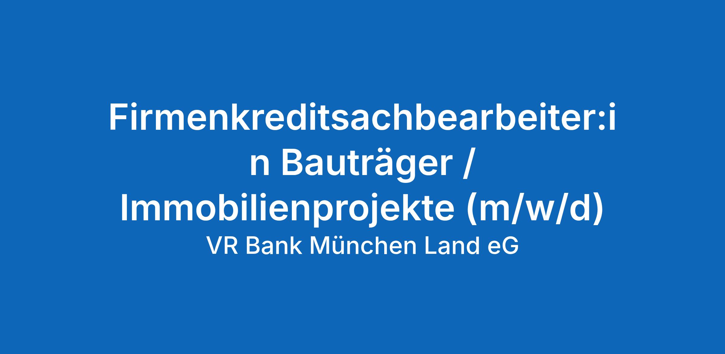 Firmenkreditsachbearbeiter:in im Bereich Bauträger und Immobilienprojekte (m/w/d)