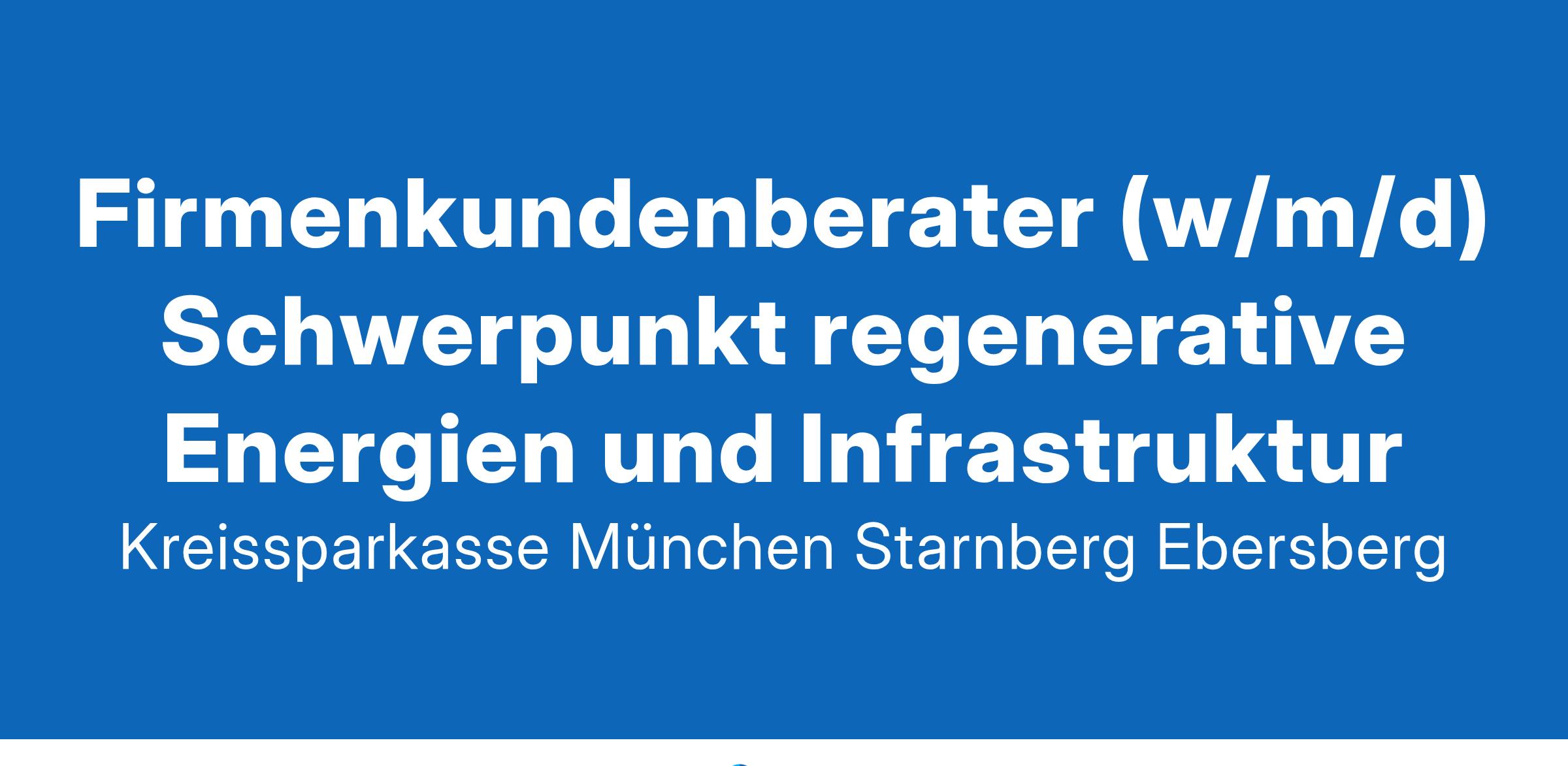 Firmenkundenberater (w/m/d) Schwerpunkt regenerative Energien und Infrastruktur Weil's um mehr als Geld geht. Ihre Zukunft bei der Kreissparkasse. Kommen Sie zur zweitgrößten Sparkasse Bayerns! Hier bringen Sie sich ein Sie bringen eine Leidenschaft für erneuerbare Energien mit, insbesondere im Bereich Windkraft, Photovoltaik, Geothermie und anderen Infrastrukturthemen. Für die Konzeption und Umsetzung innovativer Lösungen in unserer Kreissparkasse übernehmen Sie die Verantwortung. Dabei sorgen Sie für die notwendigen systemseitigen Voraussetzungen und begleiten aktiv die erfolgreiche Markteinführung. Neben dem Akquirieren von Neukunden im Bereich Infrastruktur beraten Sie auch Bestandskunden und unterstützen sie bei der Planung und Strukturierung individueller Finanzierungsvorhaben. Ihr Fokus liegt auf der Entwicklung passgenauer Finanzierungslösungen. Was Sie auszeichnet Sie haben ein wirtschaftswissenschaftliches Studium erfolgreich absolviert oder besitzen eine ver-gleichbare Qualifikation und bringen fundierte Kenntnisse im Unternehmenskundengeschäft mit. Sie haben Freude an Analysetätigkeiten und verfügen über gute Kenntnisse im Kreditsicherungs- und Gesellschaftsrecht. Erfahrungen im Bereich Infrastrukturprojektfinanzierungen (auch unter Einbeziehung von Nachhaltigkeitsaspekten) sind wünschenswert. Sie überzeugen durch eine ausgeprägte selbständige, analytische und ergebnisorientierte Arbeitsweise. Gute Gründe für Ihre Mitarbeit bei uns Mehr Zeit für Sie: Genießen Sie 32 Tage Urlaub und profitieren Sie von 13,8 Monatsgehältern . Deutschland-Ticket unschlagbar günstig: Reduzieren Sie Ihre Kosten für das Deutschland-Ticket! Abhängig von Ihrer Vergütungsgruppe zahlen Sie nur 17,55 € oder 37,55 € statt 58 €. Wellness und Fitness leicht gemacht: Mit Wellpass haben Sie Zugang zu einer Vielzahl an Sport-, Fitness- und Wellnesseinrichtungen – für nur 29,90 € im Monat. Perfekt für Yoga, Klettern, Fitness und mehr! Kulinarische Unterstützung: Nutzen Sie unseren Essensgeldzuschuss und erhalten Sie bis zu 54 € pro Monat für Ihre Verpflegung. Interessiert? Ihr Lebenslauf in Ihrer Onlinebewerbung genügt. Wir melden uns bei Ihnen! www.kskmse.de Standort: München Herr Ulrich Schmitz Personalreferent 089 23801 2396 ulrich.schmitz@kskmse.de Kreissparkasse München Starnberg Ebersberg Sendlinger-Tor-Platz 1 80337 München http://www.kskmse.de Ihr Lebenslauf in Ihrer Onlinebewerbung genügt. Wir melden uns bei Ihnen! www.kskmse.de Standort: München