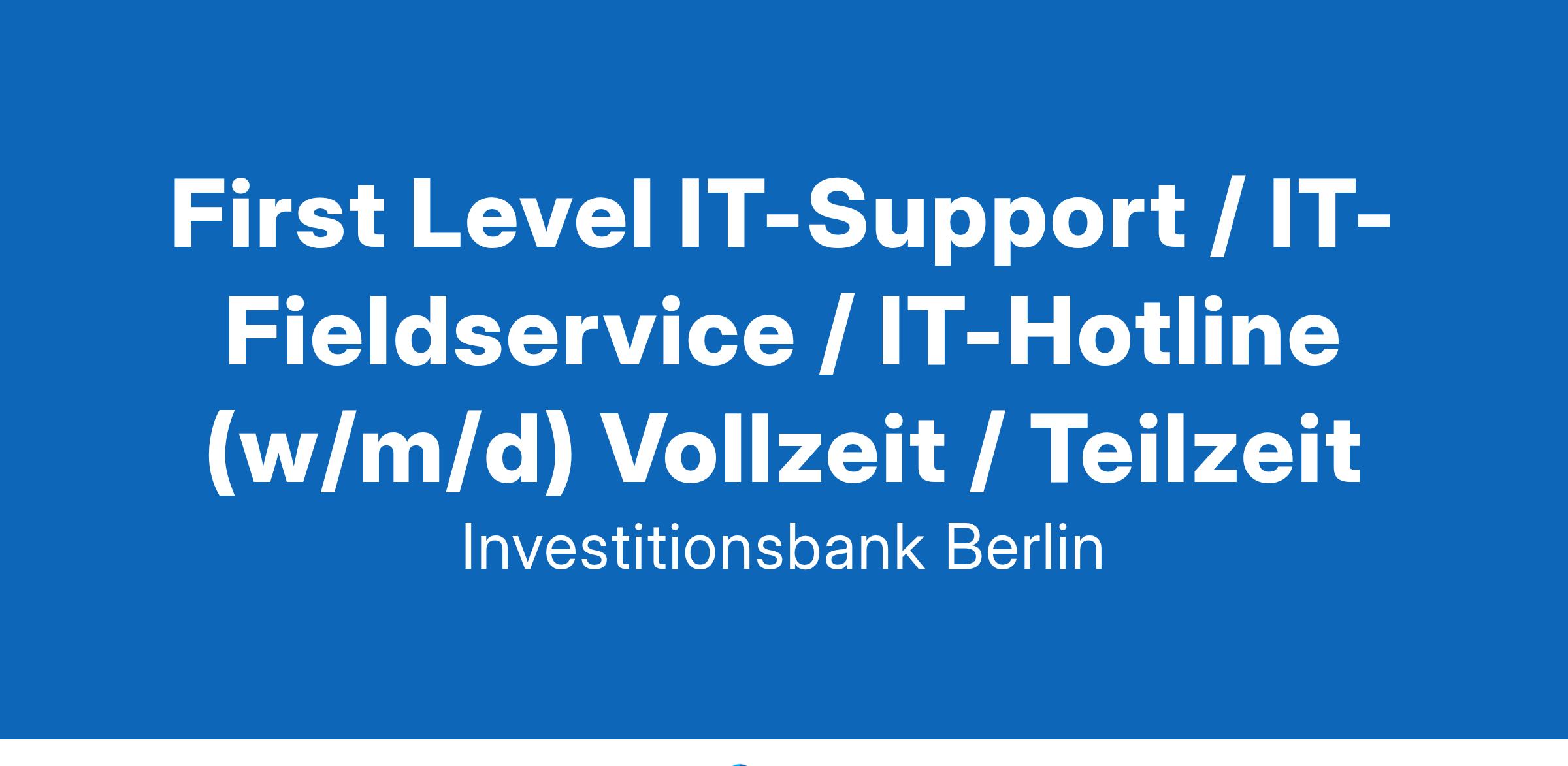 First Level IT-Support / IT-Fieldservice / IT-Hotline (w/m/d) Vollzeit / Teilzeit Wir sind die Förderbank Berlins und geben jeden Tag alles, um unsere Stadt noch lebenswerter zu machen. Wir fühlen uns als klimaneutrale Bank der Nachhaltigkeit verpflichtet, forcieren die Digitalisierung zum Wohle unserer Kund:innen und fördern Diversität. Egal ob Start-ups, Mittelstand, Technologieunternehmen oder Wohnungswirtschaft - wir finanzieren die Anforderungen der wachsenden Stadt. In unseren Geschäftsfeldern Wirtschaftsförderung, Immobilien- und Stadtentwicklung sowie Arbeitsmarktförderung unterstützen wir vor allem eines: Berlin. Als die Bank für Gründungen helfen wir innovativen Macher:innen und Start-ups, ihre Ideen zu erfolgreichen Unternehmen zu entwickeln. So werden Arbeitsplätze geschaffen und viele internationale Menschen von unserer Stadt angezogen. Das macht Berlin interessant und lebenswert! Die Abteilung IT-Services verantwortet den IT-Betrieb der IBB, der im Sinne eines hybriden Betriebsmodells aus den eigenbetriebenen IT-Services (in 2 eigenen Rechenzentren) sowie extern bezogenen IT-Services besteht. Der IT-Betrieb bzw. das reibungslose Funktionieren und kontinuierliche Optimieren der IT-Services stellt einen wesentlichen Erfolgsfaktor für die Digitalisierung der IBB dar. Gleichzeitig sind stetig steigende Anforderungen an Sicherheit und aus Banken-Regulatorik effizient und angemessen zu berücksichtigen. Die Abteilung umfasst 35 Mitarbeiter:innen und die gesamte „Fertigungstiefe“ des IT-Betriebs. Deine Aufgaben Gemeinsam mit Deinem Team bist Du die erste Ansprechperson für alle IT-Fragen unserer Mitarbeiter:innen und übernimmst dabei folgende Aufgaben: Annahme, Klassifizierung und Priorisierung im Ticketsystem von E-Mail- oder Telefonanfragen Anforderungsgerechte Analyse und Bearbeitung aller Tickets und Kommunikation der. Lösung an die betreffenden Kolleg:innen Vor Ort Kontrolle von Risiko- und Auswertungsanalysen Einrichtung & Wartung der PC's, Telefone und Mobile Devices Aktive Mitgestaltung bei der Optimierung unserer IT-Service Desk Prozesse Das bringst Du mit Spaß am service- sowie kundenorientierten Handeln und eine ausgeprägte Kommunikationsfähigkeit Bereitschaft zur versetzten Arbeitszeit in der Zeit von 07:00-18:00 Uhr Belastbarkeit und Stressresistenz im Daily Business Eine abgeschlossene Ausbildung/Studium im IT-Bereich oder eine entsprechende Weiterbildung Erste Berufserfahrung im oben genannten Bereich, insbesondere in Bezug auf Windows und Office sowie gute Deutschkenntnisse in Wort und Schrift Du kannst nicht alle unsere Anforderungen erfüllen? Das sollte Dich nicht davon abhalten, Dich trotzdem zu bewerben Neben fachlichen Voraussetzungen kannst Du uns auch mit Begeisterungsfähigkeit und dem Willen, Dich in neue Fachgebiete einzuarbeiten, überzeugen, zudem unterstützen wir Dich auch über Deine Einarbeitung hinaus durch vielseitige Schulungsmaßnahmen. Unsere Benefits Sicherer Arbeitsplatz in der Förderbank des Landes Berlin Attraktive Vergütung und zusätzliche Sozialleistungen wie vermögenwirksame Leistungen Einstieg in Vollzeit (38 Stunden) oder nach individueller Teilzeitvereinbarung möglich Flexible Arbeitszeiten von 6-20 Uhr ohne Kernarbeitszeiten sowie bis zu 60% Homeoffice möglich Persönliche sowie fachliche Weiterbildungsmaßnahmen möglich 30 Tage Urlaub, einen Freizeittag pro Jahr sowie 24. & 31.12. als Bankfeiertage Kostenloses Deutschland Firmenticket Sportgruppen, Betriebsfeiern sowie regelmäßige Teambuildingmaßnahmen Weitere Benefits findest Du hier auf unserer Karriereseite . Wir stehen für Gleichstellung und Diversität! Wir treten für die Gleichberechtigung von Frauen und Männern ein und streben in den Bereichen, wo Frauen unterrepräsentiert sind, eine Erhöhung des Frauenanteils an. Daher sind Bewerbungen von Frauen von besonderem Interesse. Darüber hinaus sind Bewerbungen von Menschen mit Migrationsgeschichte ausdrücklich erwünscht. Als Förderbank des Landes Berlin sind wir in der Region verwurzelt und pflegen Deutsch als Unternehmenssprache. Wir begrüßen Bewerbungen auf Englisch, sofern Deutschkenntnisse ab einem B2-Niveau vorliegen. Um den Einstieg zu erleichtern, sind wir als Arbeitgeberin bereit, mit entsprechenden Maßnahmen Deine Deutschkenntnisse zu fördern. Anerkannt schwerbehinderte Menschen werden bei gleicher Eignung bevorzugt berücksichtigt. Für Fragen steht Dir Maya Ganguli (Personalreferentin, Tel. 030-2125/6261) gern zur Verfügung. Doch nicht das Richtige für Dich? Weitere spannende Stellenangebote findest Du unter: Investitionsbank Berlin Onlinebewerbung Du willst mehr von uns erfahren? Dann findest Du uns auf folgenden Social-Media-Kanälen: