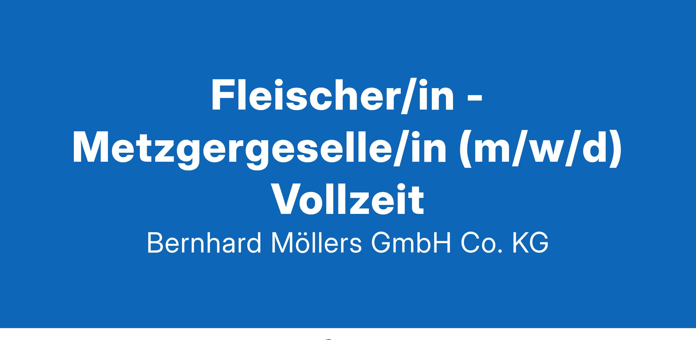 Als Familienbetrieb mit Tradition setzen wir zur Erreichung unserer Ziele auf solides Handwerk - aber eben auch auf innovative Technik. Eine Kombination, die sich bewährt hat: Seit Jahrzehnten wächst Möllers und darauf sind wir durchaus stolz. Uns ist bewusst, dass die Qualität unseres Unternehmens durch unsere Mitarbeiterinnen und Mitarbeiter geprägt wird. Diese Überzeugung bestimmt den Stellenwert unserer Führungs- und Personalarbeit. Im Herzen von Köln beschäftigen wir rund 200 Mitarbeiterinnen und Mitarbeiter. Innovation, Erfolgswille, Hands-On-Mentalität werden bei uns großgeschrieben, ebenso wie Teamgeist und eine vielversprechende Perspektive für unsere Beschäftigten. Wir suchen zum nächstmöglichen Zeitpunkt einen: Fleischer/in - Metzgergeselle/in (m/w/d) VollzeitDiese Aufgaben erwarten Sie: Zuschnitt und Portionieren von Wurst und Fleischwaren Zubereitung von Eigenprodukten Abschätzung des Bedarfs und Disposition von Fleisch Kontrollieren und Auffüllen der Fleisch-Bestände im C & C Markt Verpackungsarbeiten und Etikettieren Einhaltung der Vorschriften der Lebensmittelhygieneverordnung (HACCP) und des Unfallschutzes Ihre Kompetenzen: Erfahrung mit Fleischwaren Einsatzwille und Zuverlässigkeit Sauberes und gepflegtes Auftreten Teamfähigkeit Deutsch in Wort und Schrift Nachtarbeit Flexibler Einsatz bei 5 Tagewoche von Montag bis Samstag Wir bieten Ihnen: Die Weiterbildung zum/r Meister/in wird von uns unterstützt Intensive Einarbeitung in den neuen Verantwortungsbereich Leistungsgerechtes Einkommen 30 Tage Jahresurlaub Ein familiäres Betriebsklima mit flacher Hierarchie, kurzen Entscheidungswegen und direkter Kommunikation sowie hilfsbereite und engagierte Kollegen Mitarbeit in einem erfolgreichen Team Parkmöglichkeiten, kostenfreies Frühstück und Getränke, Mitarbeiterrabatte und -events, betriebliche Altersvorsorge, kostenfreie betriebliche Krankenversicherung und vieles mehr Haben wir Ihr Interesse geweckt?Dann freuen wir uns über Ihre vollständigen Bewerbungsunterlagen mit Angabe Ihrer Gehaltsvorstellung sowie Ihres frühestmöglichen Eintrittstermins bevorzugt per E-Mail an: Bewerbung@moellers-online.de / Fr. Weber 0221-59490-154