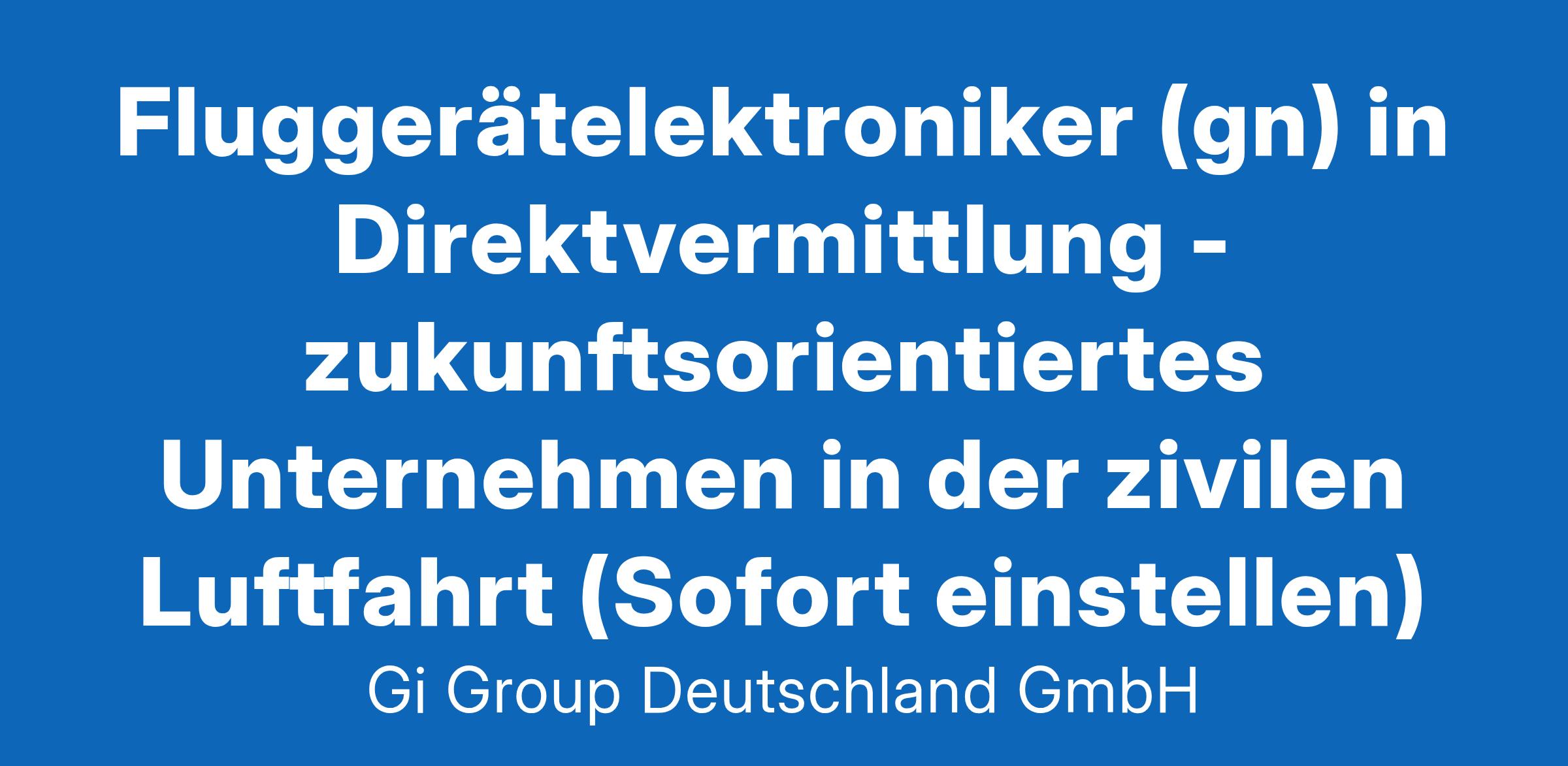 Fluggerätelektroniker (gn) in Direktvermittlung ab sofort in Vollzeit in Hamburg im Rahmen der Direktvermittlung Die Gi Group ist ein international agierender Personaldienstleister mit mehr als 500 Standorten in 40 Ländern. Unser Kunde ist ein renommiertes und zukunftsorientiertes Unternehmen aus der Luftfahrt. Deine Aufgaben Ausführung von Reparaturen an elektromechanischen Bauteilen und Geräten Fehlerdiagnosen an elektromechanischen Fluggeräten oder Baugruppen unter Anwendung von Messgeräten, Test- und Prüfeinrichtungen durchführen Mit technischen Unterlagen arbeiten und die Dokumentation entsprechend pflegen Dein Profil Eine abgeschlossene Berufsausbildung in einem luftfahrttechnischen Bereich, z.B. als Fluggerätelektroniker Alternativ ist eine abgeschlossene Berufsausbildung in einem Beruf mit Schwerpunkt Mechatronik, z.B. Mechatroniker, Elektromechaniker oder eine gleichwertige Qualifikation wünschenswert Fachkenntnisse in der Wartung, Instandhaltung und Montage Bereitschaft zum Erwerb fehlender Qualifikationen sowie zu berufsbezogener Weiterbildung Gute Englischkenntnisse Unser Angebot Urlaubs- und Weihnachtsgeld sowie eine Gewinnbeteiligung Flexible Arbeitszeiten (Gleitzeit, keine Schichtarbeit) und 30 Tage Urlaub Flugvergünstigungen, Einkaufsrabatte in Geschäften und Jobrad-Leasing Kostenloses Parken, betriebliche Altersvorsorge und Verpflegungszuschuss für die Kantine Deine Bewerbung Für Deine Bewerbung Fluggerätelektroniker in der Direktvermittlung klicke bitte einfach auf „Jetzt bewerben“. Dort kannst Du Deine Kontaktdaten eingeben sowie Deinen Lebenslauf und Deine Bewerbungsunterlagen hochladen. Du benötigst dafür nur ca. 1 Minute. Dein zuständiger Personaldisponent wird sich bei Dir schnellstmöglich melden. Gerne kannst Du uns auch Deine Bewerbungsunterlagen per E-Mail zusenden. Wir freuen uns auf Deine Bewerbung! Unsere Stellenangebote richten sich an Arbeitssuchende jeglichen Geschlechts. (gn) = geschlechtsneutral. Kontakt Gi Group Recruiting Team