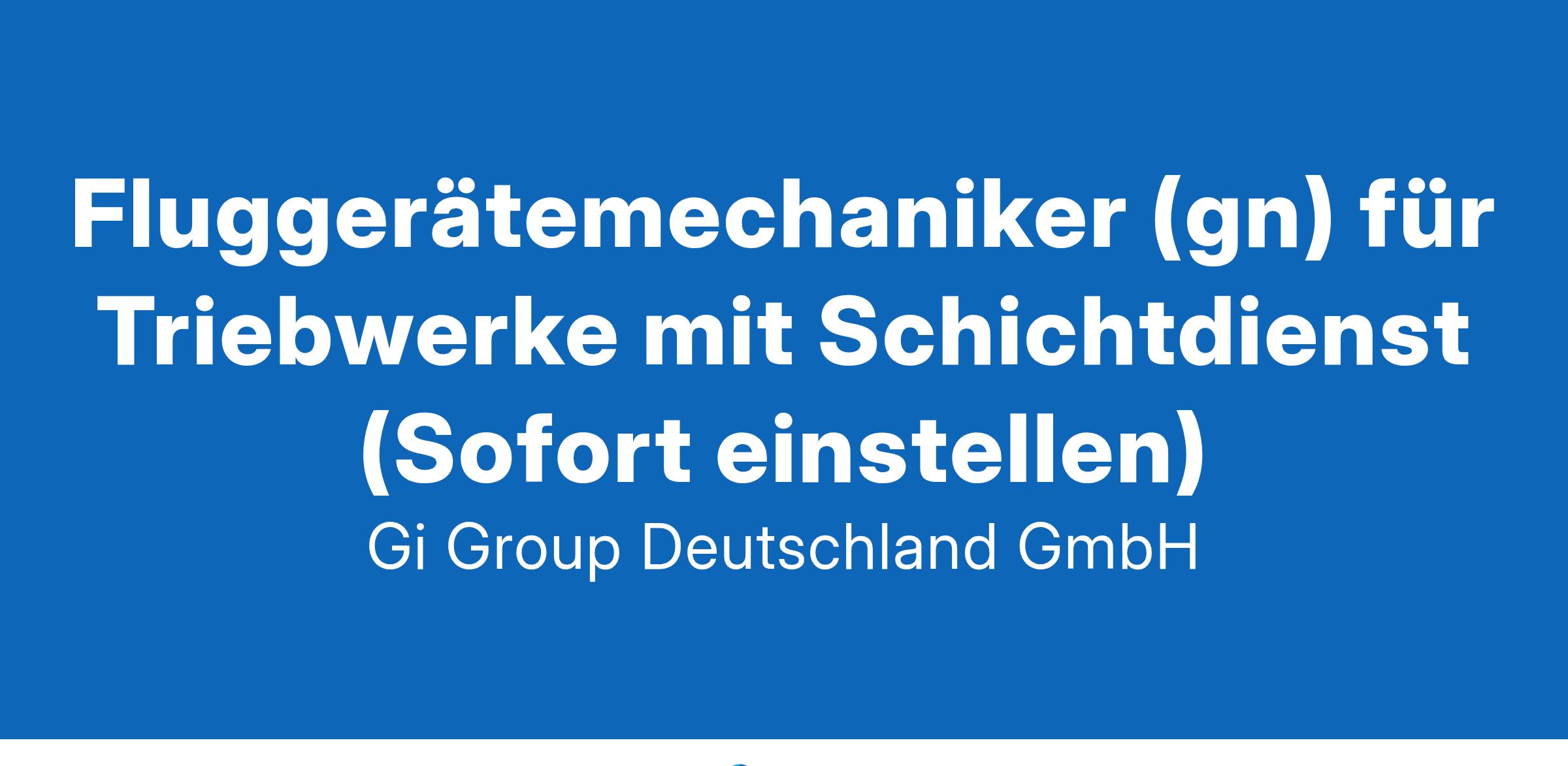 Triebwerkmechaniker (gn) in Direktvermittlung ab sofort in Vollzeit in Hamburg Die Gi Group ist ein international agierender Personaldienstleister mit mehr als 500 Standorten in 40 Ländern. Unser Kunde ist ein renommiertes und zukunftsorientiertes Unternehmen aus der Luftfahrt.  Deine Aufgaben Die Demontage und Montage von Triebwerken und Triebwerksmodulen Die Befundung und Reparatur von Triebwerken und Triebwerksteilen Dein Profil Eine abgeschlossene Berufsausbildung in einem metallverarbeitenden Beruf in Verbindung mit Berufserfahrung in der Wartung, Reparatur oder Überholung von Triebwerken z.B. Fluggerätemechaniker, AML, AMP oder vergleichbar Fortgeschrittene Englischkenntnisse Bereitschaft zum Schichtdienst (verschiedene Schichtmodelle mit Zulagen)  Das bietet der Kunde  Urlaubs- und Weihnachtsgeld sowie eine Gewinnbeteiligung, 30 Tage Urlaub  Flugvergünstigungen, Einkaufsrabatte in Geschäften und Jobrad-Leasing  Kostenloses Parken, betriebliche Altersvorsorge und Verpflegungszuschuss für die Kantine  Fitness- und Sportangebote, Jobticket/Zuschuss ÖPNV Und vieles mehr  Deine Bewerbung Für Deine Bewerbung als Triebwerkmechaniker klicke bitte einfach auf „Jetzt bewerben“. Dort kannst Du Deine Kontaktdaten eingeben sowie Deinen Lebenslauf und Deine Bewerbungsunterlagen hochladen. Du benötigst dafür nur ca. 1 Minute. Dein zuständiger Personaldisponent wird sich bei Dir schnellstmöglich melden. Gerne kannst Du uns auch Deine Bewerbungsunterlagen per E-Mail zusenden. Wir freuen uns auf Deine Bewerbung als Triebwerkmechaniker! Unsere Stellenangebote richten sich an Arbeitssuchende jeglichen Geschlechts. (gn) = geschlechtsneutral. Kontakt Gi Group Recruiting Team