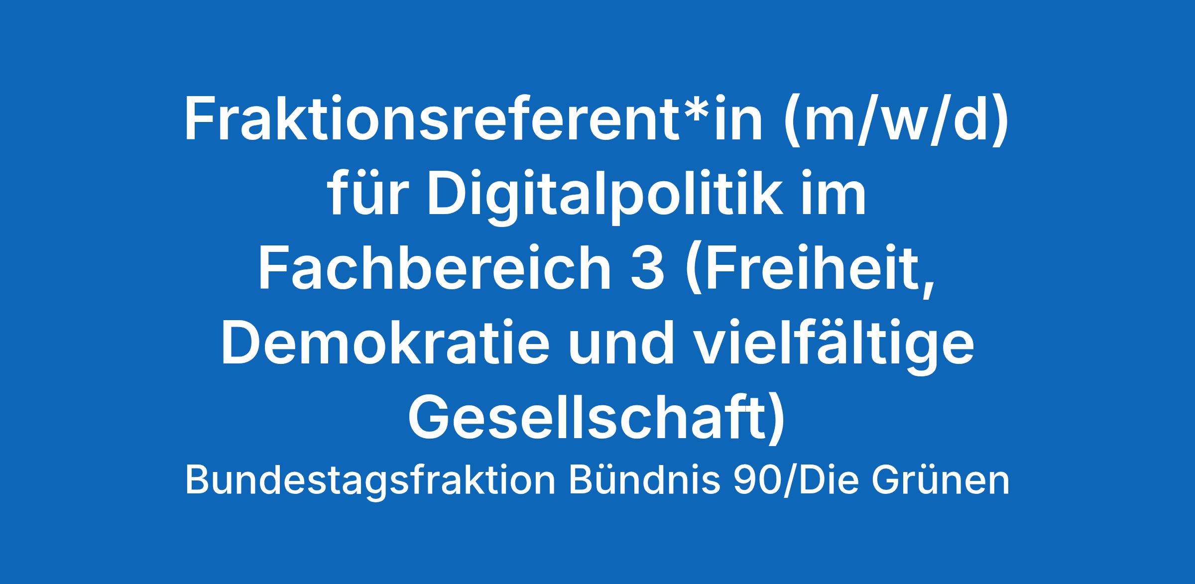 Fraktionsreferenten*in (m/w/d) für Digitalpolitik im Fachbereich 3 (Freiheit, Demokratie und vielfältige Gesellschaft)
