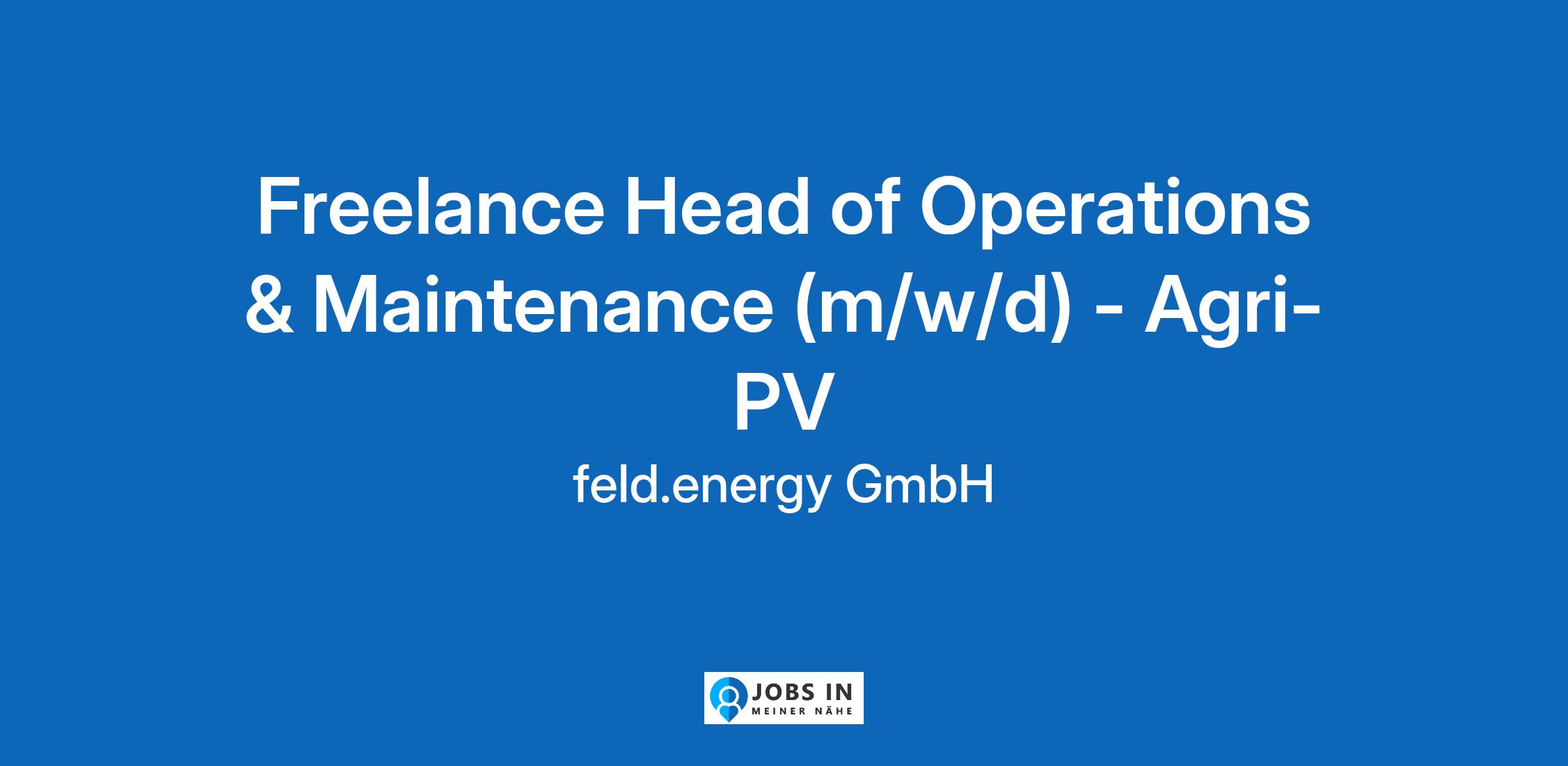 Zur Untersttzung unseres weiteren Wachstums suchen wir ab sofort eine erfahrene Freelance-Fhrungskraft im Bereich Operations & Maintenance (O&M) , die mit strategischem Weitblick und operativer Erfahrung den Aufbau und die Steuerung unseres O&M-Bereichs bernimmt.