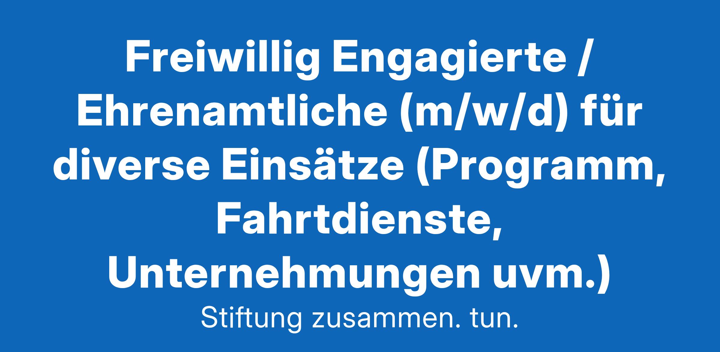 Freiwillig Engagierte / Ehrenamtliche (m/w/d) für diverse Einsätze (Programm, Fahrtdienste, Unternehmungen uvm.)