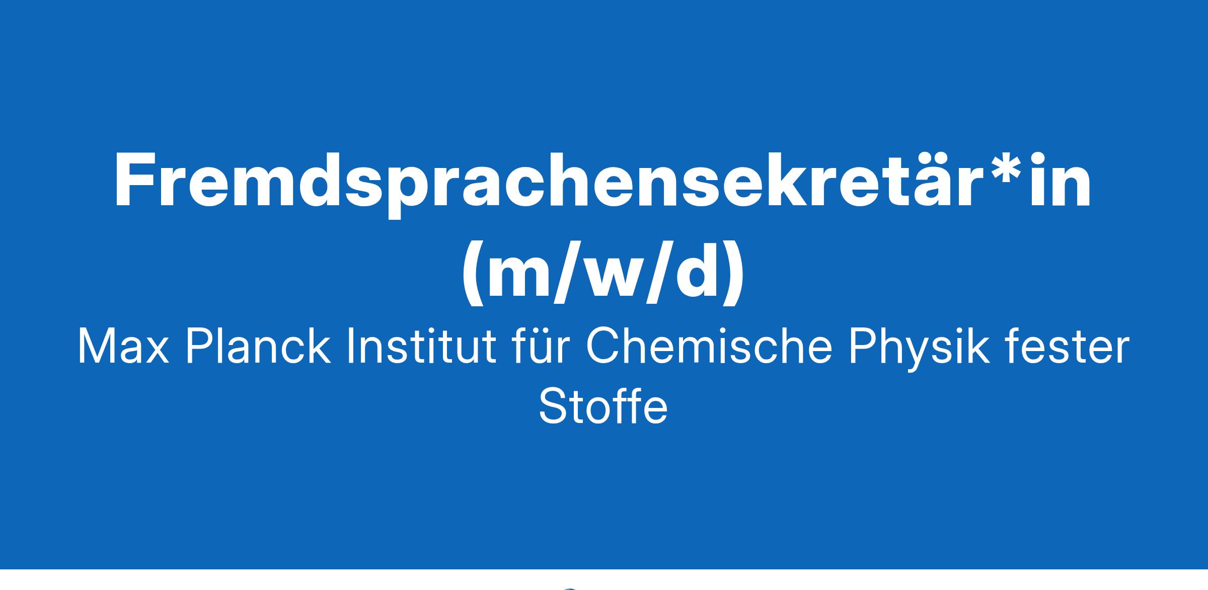 Fremdsprachensekretär*in (m/w/d) Max-Planck-Institut für Chemische Physik fester Stoffe Das Max-Planck-Institut für Chemische Physik fester Stoffe in Dresden ist ein international führendes Forschungsinstitut der Max-Planck-Gesellschaft (MPG) und betreibt Spitzenforschung auf dem Gebiet der Materialwissenschaften. Für die administrative Unterstützung der Direktorin und Vizepräsidentin suchen wir befristet für vier Jahre mit der Option der unbefristeten Festanstellung zum nächstmöglichen Zeitpunkt eine*n Fremdsprachensekretär*in (m/w/d) in Vollzeit (100%) Ihre Aufgaben: Organisation eines Direktionssekretariats, die selbstständige Bearbeitung der täglichen Korrespondenz in deutscher und englischer Sprache, insbesondere die Planung, Buchung und Abrechnung von Dienstreisen im In- und Ausland, Vorbereitung und Organisation von Kolloquien und Tagungen sowie die Überwachung von Terminen, auch in Zusammenarbeit mit Kolleg*innen in der Max-Planck-Generalverwaltung. Ihr Profil: Einschlägige Berufsausbildung als Fremdsprachensekretär*in/Assistent*in oder eine vergleichbare Qualifikation mit mehrjähriger Berufserfahrung. Vorteilhaft wären Erfahrungen im Bereich der Reisebuchung und Reisekostenabrechnung. Sehr gute Deutsch- und Englischkenntnisse in Wort und Schrift sowie ein sicherer Umgang mit moderner Bürotechnik. Hohes Maß an Selbstständigkeit, Zuverlässigkeit, Verantwortungsbewusstsein, Flexibilität und Diskretion sowie Belastbarkeit in stressigen Situationen. Darüber hinaus sollten Sie über Organisationstalent verfügen und Freude am Umgang mit internationalen Kolleg*innen und Gäst*innen haben. Unser Angebot: Wir bieten Ihnen eine sehr interessante und vielseitige Tätigkeit (39 Std./Woche) in einem renommierten, international ausgerichteten Forschungsinstitut mit fachlichen und persönlichen Weiterbildungs- und Entwicklungsmöglichkeiten. Vergütung und Urlaub richten sich nach dem TVöD Bund zuzüglich der Sozialleistungen des öffentlichen Dienstes (VBL/Jobticket). Flexibilität durch Gleitzeit und die Möglichkeit mobil zu arbeiten. Eine sehr gute Vereinbarkeit von Beruf und Familie und die Angliederung an eine Kindertagesstätte. Ihr Arbeitsplatz ist modern ausgestattet und mit öffentlichen Verkehrsmitteln gut zu erreichen. Die Max-Planck-Gesellschaft strebt nach Geschlechtergerechtigkeit und Vielfalt. Wir begrüßen Bewerbungen jeden Hintergrunds. Die Max-Planck-Gesellschaft hat sich zum Ziel gesetzt, mehr schwerbehinderte Menschen zu beschäftigen. Bewerbungen Schwerbehinderter sind ausdrücklich erwünscht. Haben wir Ihr Interesse geweckt? Bitte bewerben Sie sich bis spätestens 28. Februar 2025 mit Ihren aussagekräftigen Unterlagen (Anschreiben, Lebenslauf, Zeugnisse) gebündelt in einem PDF-Dokument ausschließlich per E-Mail unter personal@cpfs.mpg.de Weitere Informationen über das Max-Planck-Institut für Chemische Physik fester Stoffe finden Sie unter: https://www.cpfs.mpg.de Wir unterstützen aktiv die Vereinbarkeit von Beruf und Familie.