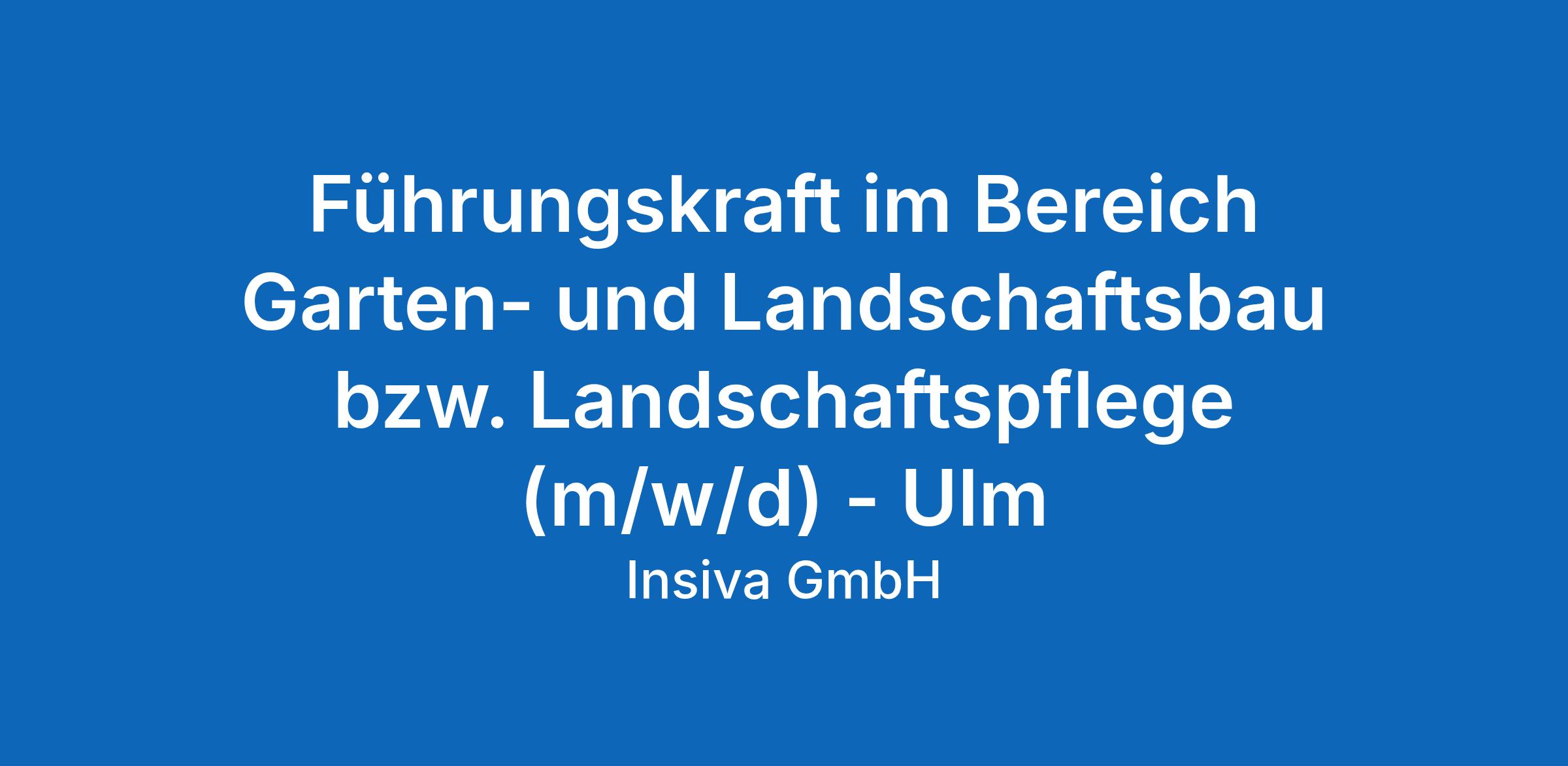 Für die Niederlassung der Insiva GmbH am Tannenhof Ulm suchen wir ab sofort unbefristet eine Führungskraft (m/w/d) im Bereich Garten- und Landschaftsbau bzw. Landschaftspflege.