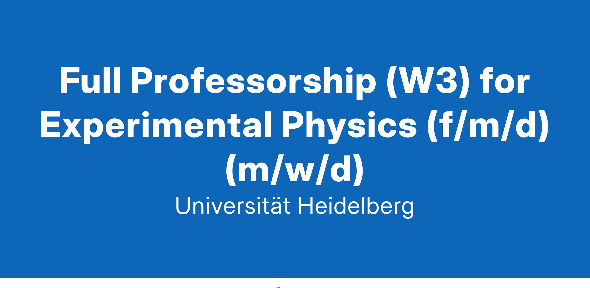 The Department of Physics and Astronomy at Heidelberg University is one of the largest internationally renowned research centres of its kind in Germany. It offers a wide range of research and study opportunities across a uniquely broad spectrum of physical and astronomical fields. GSI Helmholtzzentrum für Schwerionenforschung in Darmstadt operates one of the leading particle accelerators for science. In the next few years, the new FAIR (Facility for Antiproton and Ion Research), one of the world's largest research projects, will be built in international cooperation. GSI is a member of the Hermann von Helmholtz-Gemeinschaft Deutscher Forschungszentren e.V., the largest scientific organization in Germany. The Department of Physics and Astronomy at Heidelberg University and GSI invite applications for a The area of responsibility encompasses both research and teaching in the field of experimental physics in its full breadth in the Bachelor's and Master's programs, as well as in the Heidelberg Graduate School for Physics, in addition to performing tasks of academic self-administration. Participation in existing and planned teaching and research networks is expected. Prerequisites for an application are: A university degree A qualified doctorate Successful teaching experience and (in accordance with Article 47, Paragraph 2 of the Higher Education Law of the Federal State of Baden-Württemberg) a habilitation, a successfully evaluated junior professorship, or equivalent qualifications Please submit your application with the usual documents: CV and list of publications Statement of research interests and a brief description of future research plans A summary of experience in and plans for teaching as a single PDF file until 28.02.2025 , to the Dean at the Department for Physics and Astronomy of Heidelberg University, Prof. Dr. André Butz, (Inhalt entfernt). Heidelberg University and GSI stand for equal opportunities and diversity. Both institutions seek to achieve a higher proportion of women in areas where they have so far not been adequately represented. Qualified female candidates are thus especially invited to apply. Persons with severe disabilities will be given preference if they are equally qualified. Information on job advertisements and the collection of personal data are available at (Inhalt entfernt).