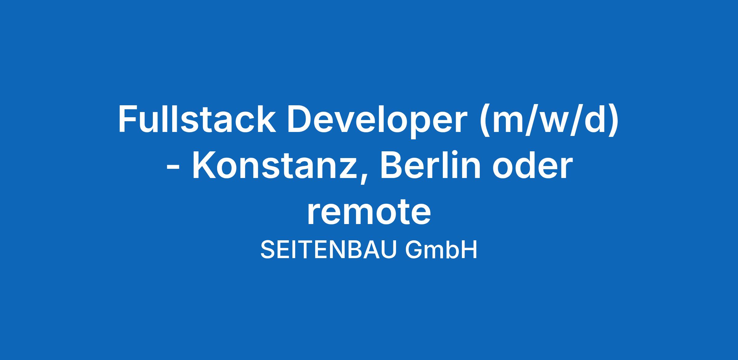 Fullstack Developer (m/w/d) – Konstanz, Berlin oder remote