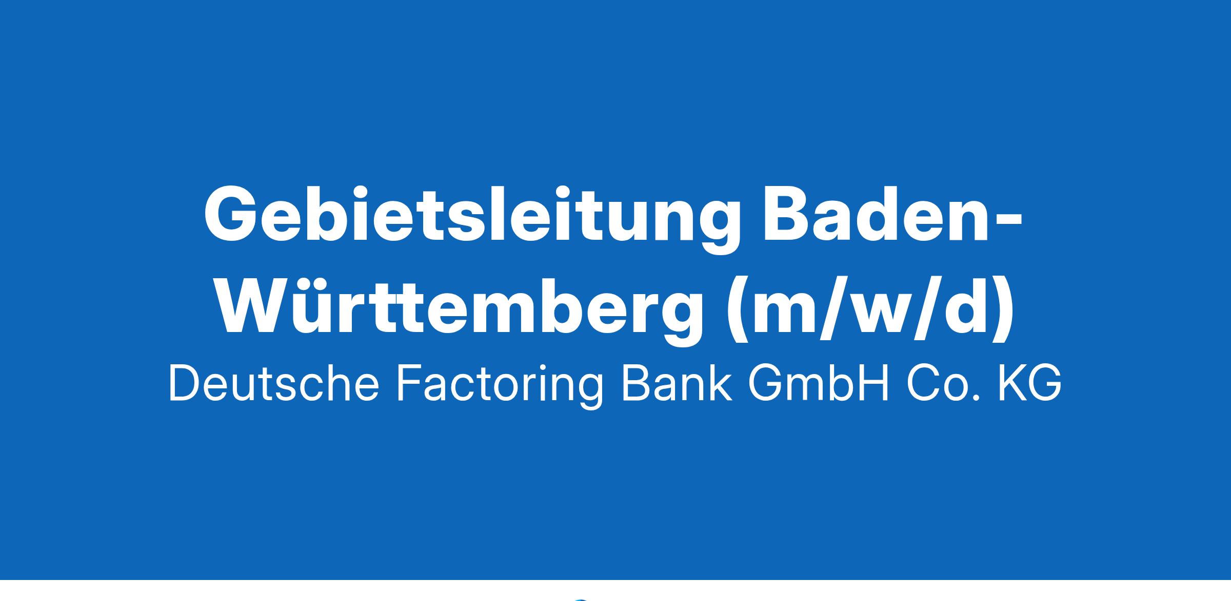 Für moderne Unternehmen spielt Factoring im Finanzierungsmix eine immer größere Rolle. Die Deutsche Factoring Bank gehört zur Deutschen Leasing Gruppe und ist als Teil der Sparkassen-Finanzgruppe eines der führenden Institute der Branche. Auf Basis von über 50-jähriger Erfahrung in nationalen und internationalen Geschäften unterstützt die Deutsche Factoring Bank neben großen und kleinen Firmen insbesondere mittelständische Unternehmen aus über 50 Branchen mit modularen Leistungspaketen für Finanzierung, Ausfallschutz und Forderungsmanagement. Setzen Sie auf einen wachsenden Markt! Bewerben Sie sich jetzt bei der Deutschen Factoring Bank, dem Kompetenzcenter für Factoring- und Forderungsmanagement. Gebietsleitung Baden-Württemberg (m/w/d) in Möglichkeit auf Homeoffice Ihre Hauptaufgaben Ziel der Stelle ist die Mitwirkung bei der Erreichung der ertrags- und sonstigen geschäftspolitischen Zielsetzungen der Bank durch die eigenverantwortliche Akquisition neuer Factoringkunden bis zu einem (Konzern-) Umsatz bis 40 Mio. EUR p.a. über Vertriebsmittler, insbesondere über Sparkassen. Ihre Hauptaufgaben: Kalkulation und Ausarbeitung von Factoring-Angeboten Durchführung von Sparkassenbesuchen mit Gesprächspartnern auf allen Ebenen Betreuung und Schulung der Sparkassen im Vertriebsgebiet Erörterung des Factoring-Potentials gemeinsam mit den zugeordneten Sparkassen Einholung der für eine Entscheidung notwendigen betriebswirtschaftlichen Kunden-Unterlagen sowie Prüfung und Aufbereitung dieser Unterlagen in Form einer Entscheidungsvorlage Begleitung des Anbindungsprozesses von Neukunden Pflege des Vertriebsinformationssystems hinsichtlich Kontaktdaten und Aktivitäten Ihr Profil Betriebswirtschaftliches Studium oder vergleichbare Berufsausbildung Mindestens zwei Jahre Berufserfahrung im Factoring oder im Bankenbereich Sicherer Umgang mit MS Office Wir bieten Ihnen Einen abwechslungsreichen Arbeitsplatz in einem wachsenden Marktumfeld Ein attraktives Gehaltspaket mit überdurchschnittlichen Sozialleistungen Betriebliche Altersvorsorge Eine unbefristete Stelle 39 Stunden-Woche Flexible Arbeitszeiten gemäß unserem Gleitzeitmodell Die Mitarbeit im Möglichkeit auf Homeoffice Einen Dienstwagen Einzel- und Team-Weiterbildungsmöglichkeiten Eine Mitgliedschaft bei Hansefit oder EGYM Wellpass Vergünstigungen für diverse Shoppingangebote Firmenevents, wie Sommer- und Weihnachtsfeste Kontakt Wir freuen uns auf Ihre aussagekräftige Bewerbung unter Angabe Ihrer Gehaltsvorstellung und Verfügbarkeit. Wir bitten um Verständnis, dass wir Bewerbungen ausschließlich über das Bewerbermanagementsystem entgegennehmen. Wir weisen darauf hin, dass eine Verwendung der männlichen Form explizit als geschlechtsunabhängig verstanden werden soll. Für Fragen steht Ihnen gerne zur Verfügung: Deutsche Factoring Bank GmbH & Co. KG Nicole Schade Hansator (Inhalt entfernt) Bremen (Inhalt entfernt) Jetzt online bewerben