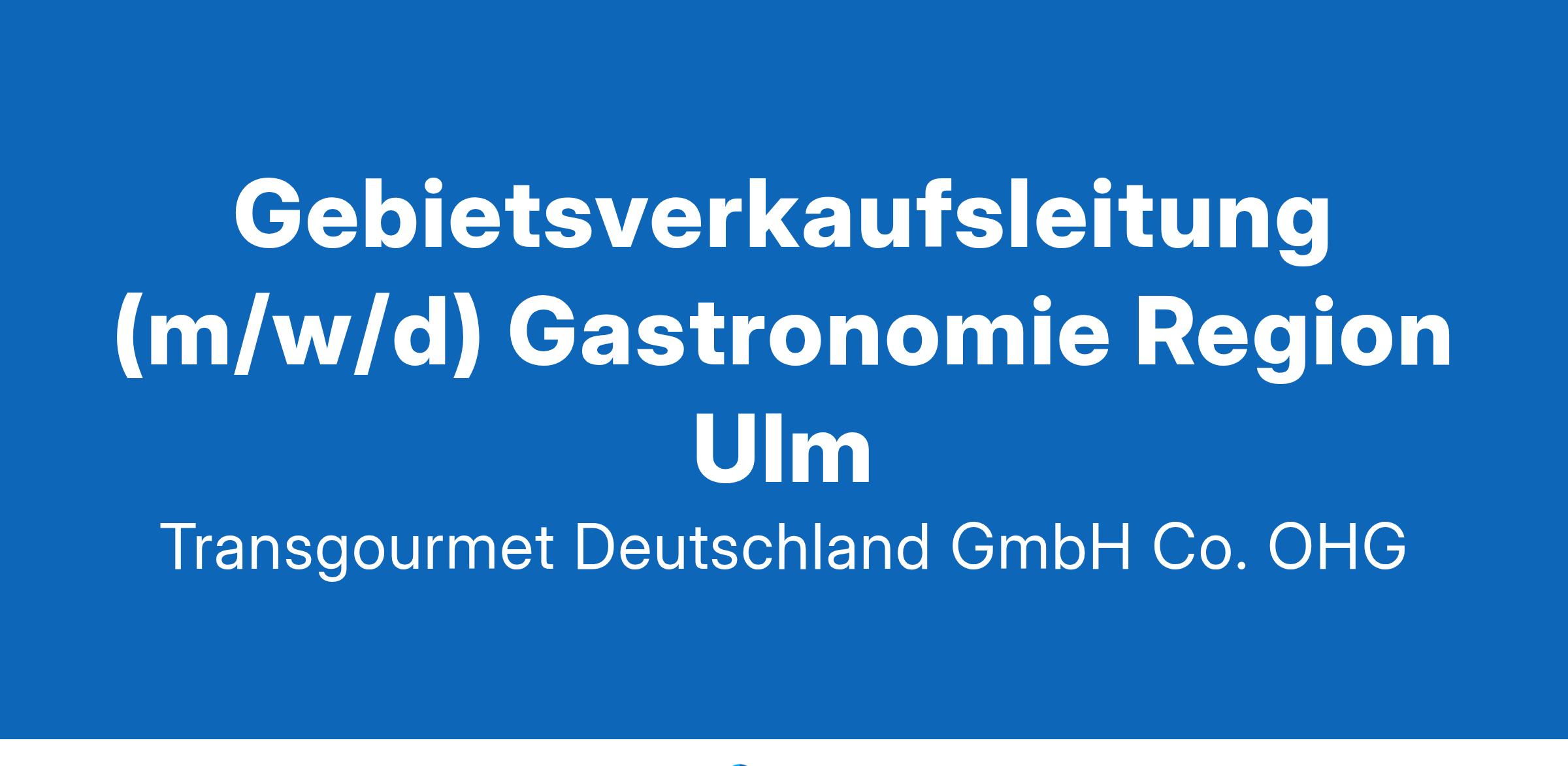 Transgourmet Deutschland GmbH & Co. OHG Gebietsverkaufsleitung (m/w/d) Gastronomie Region Ulm Ulm unbefristet Vollzeit Das sind wir Erfolgreich sind wir, weil wir handeln. Und zwar mit Genuss. Wir versorgen jeden Tag professionelle Großabnehmer zuverlässig mit frischen Lebensmitteln, vielfältigen Non-Food-Artikeln und innovativen Dienstleistungen. Wir unterstützen unsere gastronomischen und gewerblichen Kunden mit freundlicher Beratung und ganzheitlichen Konzepten. Weil uns Nachhaltigkeit ein besonderes Anliegen ist, steht es im Fokus unseres Handelns. Wir freuen uns immer, Kolleginnen und Kollegen zu finden, die diese Einstellung mit uns teilen: Handeln. Gerne mit Genuss. Wir suchen Sie für folgende Position in unserem Betrieb Ulm Gebietsverkaufsleitung (m/w/d) Gastronomie Region Ulm in Vollzeit Ihr Aufgabengebiet... In Ihrem Vertriebsgebiet verantworten Sie die Organisation, Steuerung und Optimierung der vertrieblichen Prozesse. Sie knüpfen Kontakte zu Neukunden und bauen bestehende Kundenbeziehungen aus. Hinzu kommt die ziel- und ergebnisorientierte Führung der Ihnen zugeordneten Mitarbeiter:innen im Außendienst. Sie planen Umsatz und Ertrag und sind für das Erreichen der Jahresergebnisse verantwortlich. Das bringen Sie mit... Kaufmännische Ausbildung im Handel oder ein BWL- Studium Mehrjährige Berufserfahrung in einer Führungsposition im Vertrieb von Lebensmitteln im Großhandel, idealerweise der Gastronomie Umfangreiche Sortimentskenntnisse Sicherheit in der Analyse von Kennzahlen und Statistiken Kommunikationsstarkes und selbstbewusstes Auftreten mit Führungskompetenz Was wir bieten... 30 Tage Jahresurlaub Arbeiten in einem stark wachsenden Unternehmen Corporate Benefits Gute & intensive Einarbeitung JobRad Mitarbeiterrabatte Vermögenswirksame Leistungen Firmenwagen Flexible Arbeitszeiten Firmenhandy Sie sind interessiert? Dann freuen wir uns auf Ihre Bewerbung über unser Online-Bewerbungsformular mit Angabe Ihres Gehaltswunsches. Einfach unten auf BEWERBEN klicken! Schwerbehinderte Bewerberinnen und Bewerber werden bei gleicher Eignung besonders berücksichtigt. Transgourmet Deutschland GmbH & Co. OHG Frau Peggy Westphal Eiselauer Weg 2 89081 Ulm Tel: 030 89005 1609 Mail: Peggy.Westphal@transgourmet.de