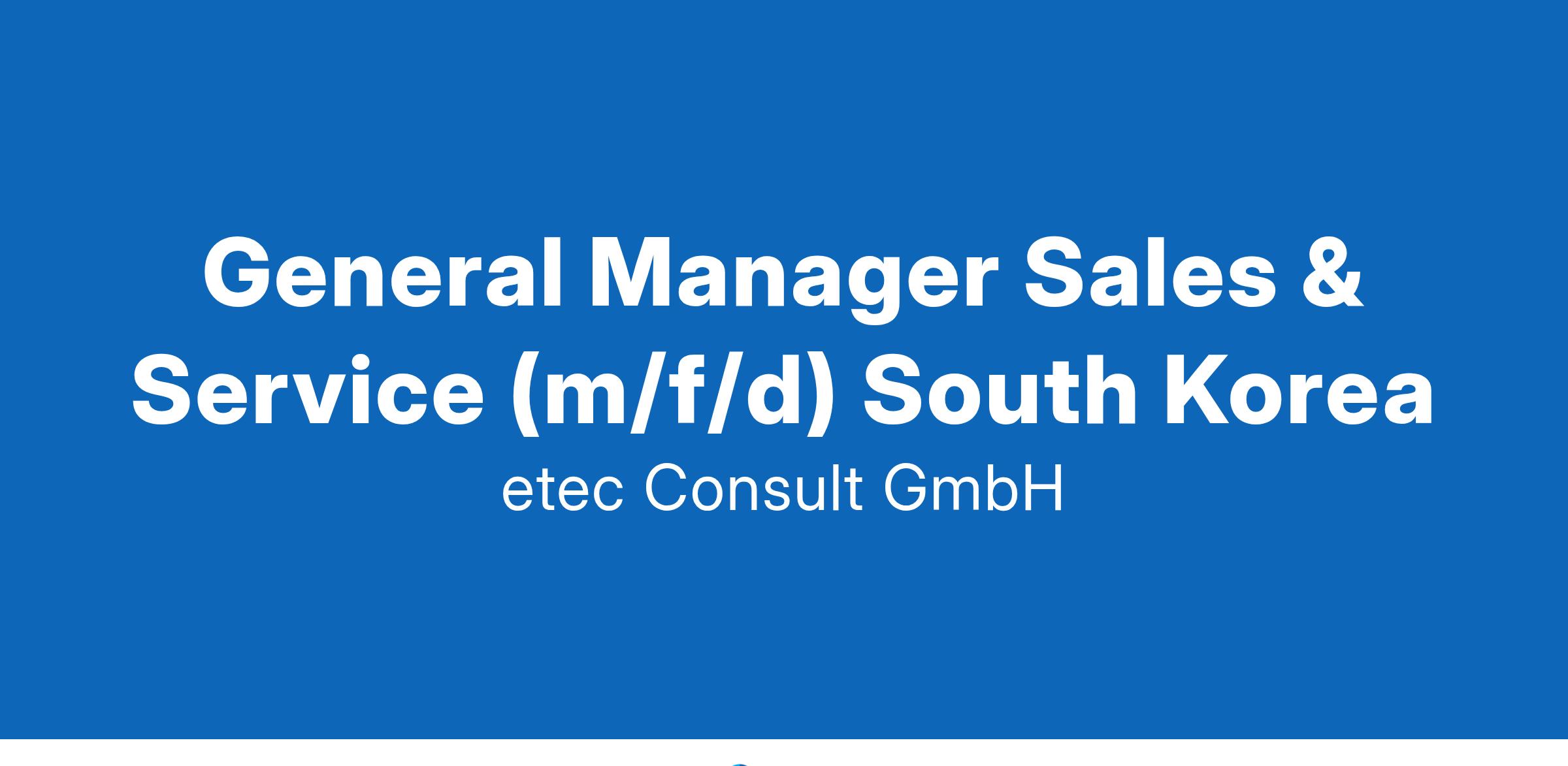 Our client is a German, family-owned international market leader in the field of highly technical equipment for various industries. Proof of the strong international focus lies in the fact that the 20 subsidiaries worldwide currently account for over 50 percent of the company's turnover. For their well-established subsidiary in Seoul / Korea we are looking for you asGeneral Manager Sales & Service (m/f/d) South KoreaTasks