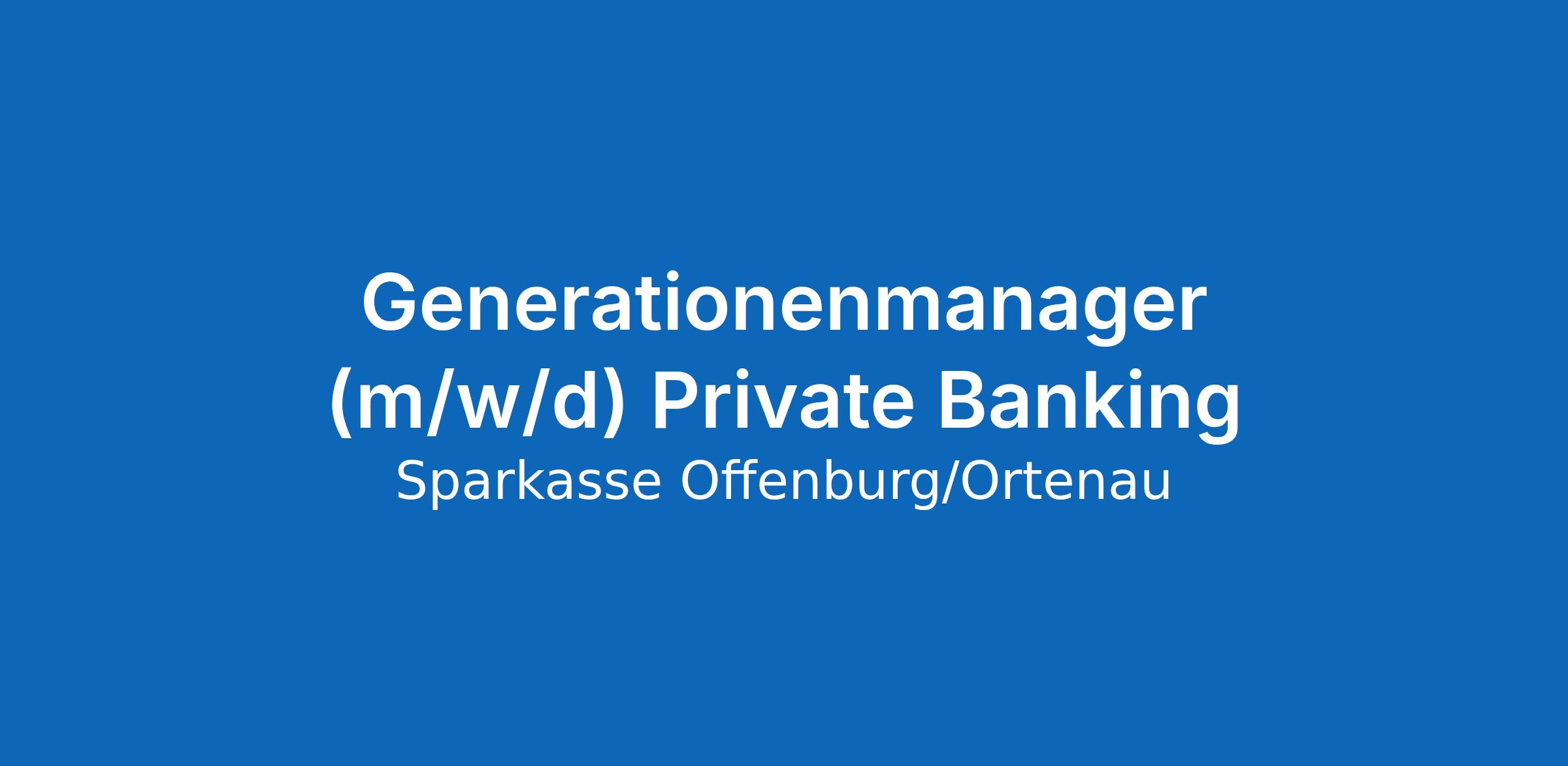 Im Private Banking sind wir überdurchschnittlich gewachsen. Werden Sie Teil unseres Erfolgs und verstärken Sie unser Team als Generationenmanager (m/w/d) Private Banking am Standort SparkassenZentrale in Offenburg.