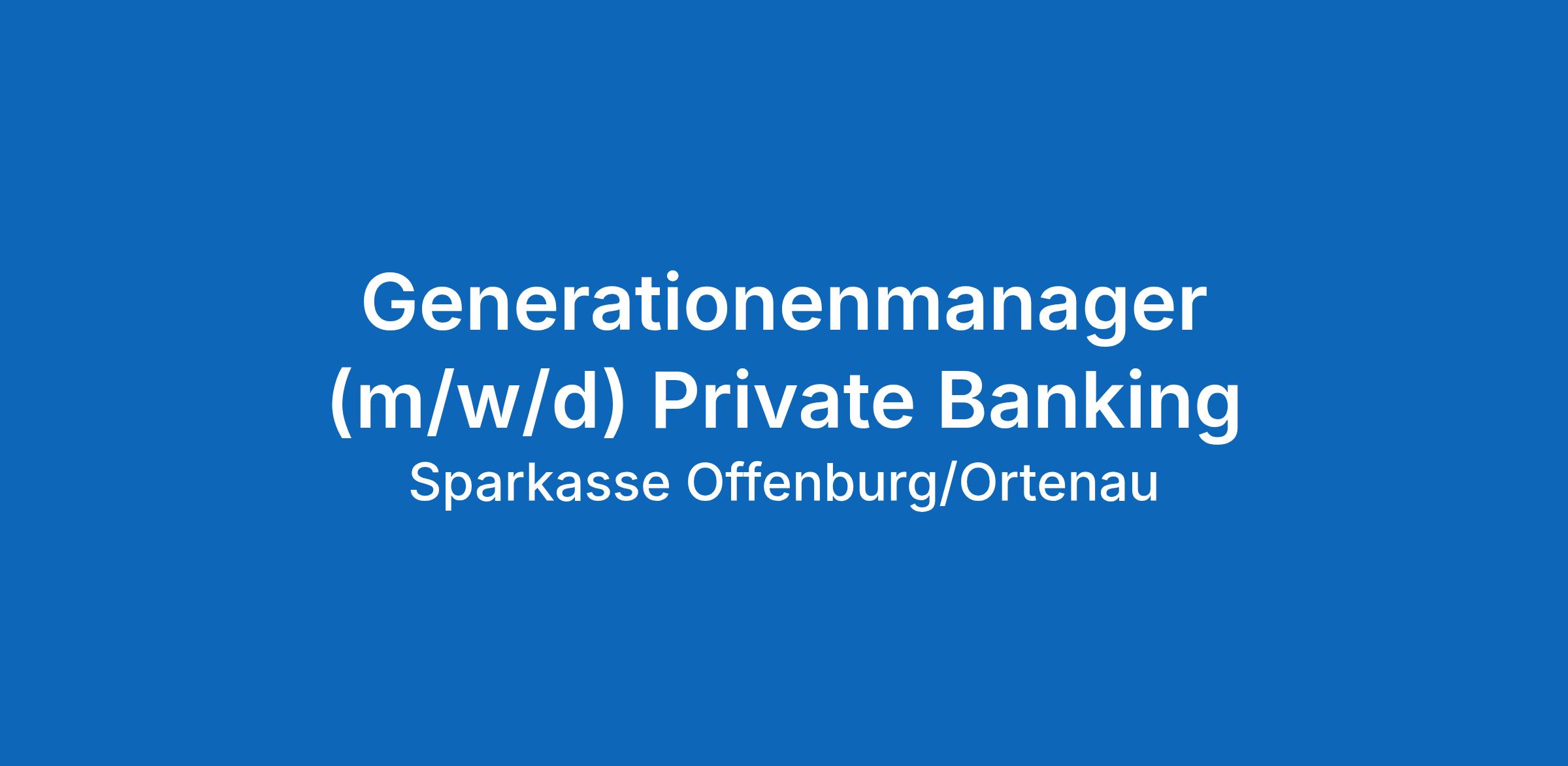 Im Private Banking sind wir überdurchschnittlich gewachsen. Werden Sie Teil unseres Erfolgs und verstärken Sie unser Team als Generationenmanager (m/w/d) Private Banking am Standort SparkassenZentrale in Offenburg.