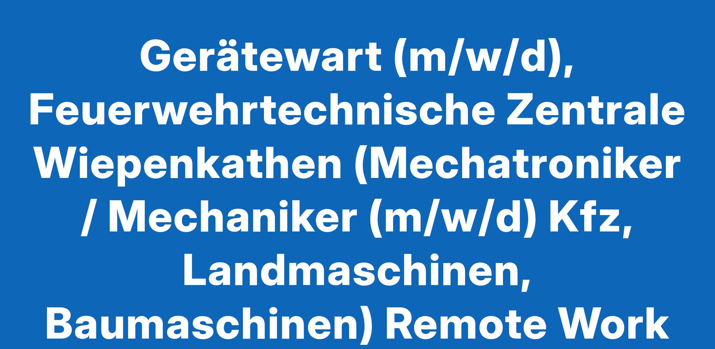 Gerätewart (m/w/d), Feuerwehrtechnische Zentrale Wiepenkathen (Mechatroniker / Mechaniker (m/w/d) Kfz, Landmaschinen, Baumaschinen) Remote Work Kein Home Office