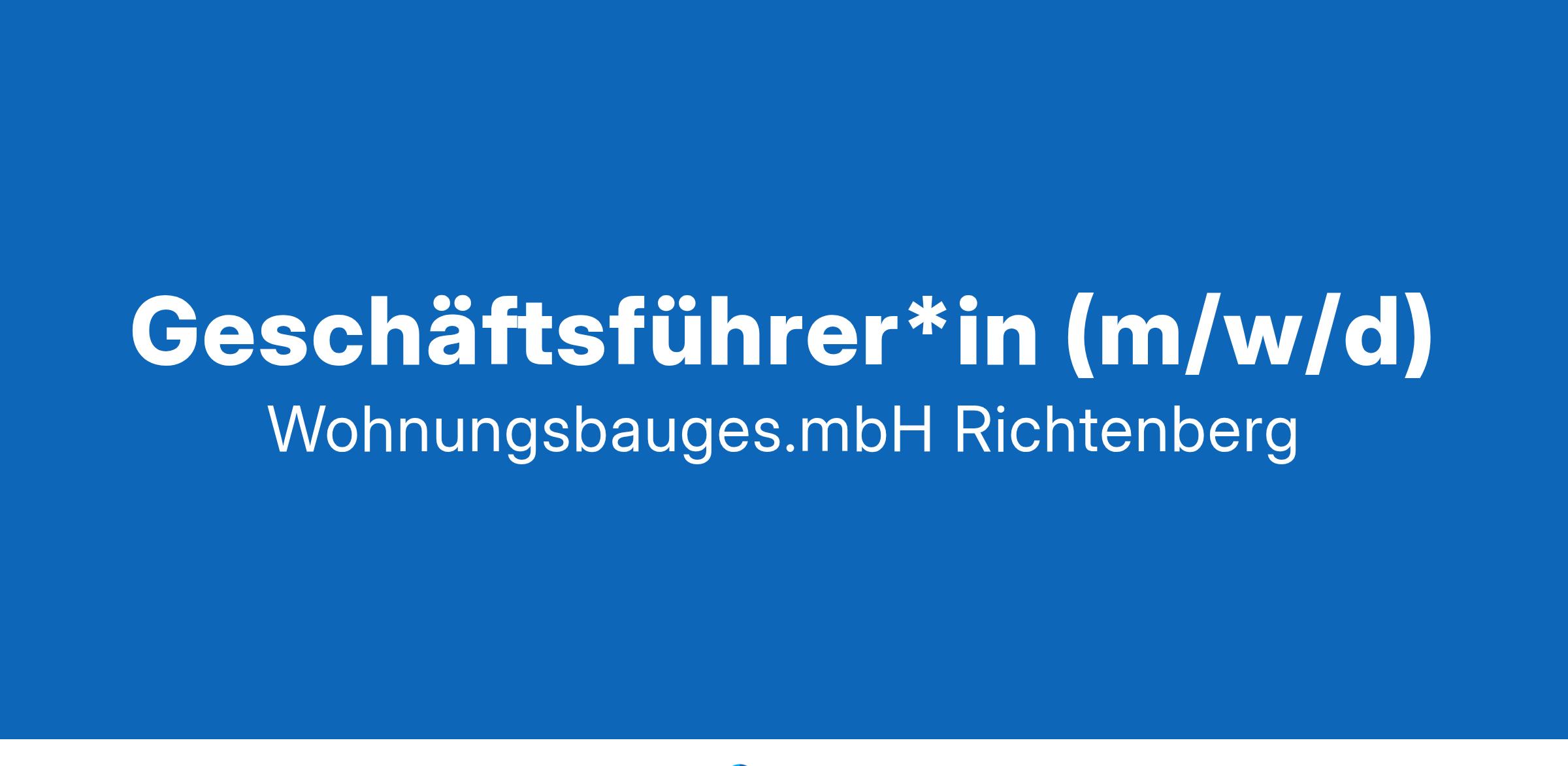 Die Wurzeln der Wohnungsbaugesellschaft Richtenberg reichen bis ins Jahr 1990. Mit fünfzehn Gesellschaftern (Kommunen) aus dem ehemaligen Landkreis Stralsund erstreckt sich unser Einzugsgebiet von Prohn im Norden bis nach Tribsees im Süden, von Negast im Osten bis Lüdershagen und Trinwillershagen im Westen. Wir sind Eigentümer von 1048 Wohnungen und vermieten eigene Garagen, Pkw-Stellplätze, Gärten sowie Gewerberäume. Weiterhin bewirtschaften wir Wohnungen und Gewerbeeinheiten für Gemeinden, Hauseigentümer sowie Wohnungseigentümergemeinschaften. Im Rahmen einer ruhestandsbedingten Nachfolgeregelung suchen wir zum 01.09.2025 eine loyale, zukunfts- und teamorientierte Führungspersönlichkeit (m/w/d) als Geschäftsführer*in Sie führen die Gesellschaft im Sinne des Gesellschaftervertrages und übernehmen die Gesamtverantwortung für die strategische und unternehmerische Ausrichtung der Geschäftspolitik sowie für die kontinuierliche Optimierung der Prozesse und Qualitätsstandards im Immobilienmanagement. Schwerpunkt Ihrer Arbeit ist die Leitung und Sicherstellung des operativen Tagesgeschäftes sowie der strategischen Gesamtplanung des Unternehmens. Sie zeichnen sich verantwortlich für die Erstellung und Einhaltung der Wirtschafts-/Finanzpläne sowie für die Liquidität der Wohnungsbaugesellschaft. Im Rahmen Ihrer Tätigkeit haben Sie ein effektives Controlling, Portfolio- und Risikomanagement sicherzustellen. Weiterhin sind Sie für die Weiterentwicklung der IT und des Digitalisierungsprozesses verantwortlich. Sie sind verantwortlich für die bauliche Unterhaltung sowie Instandhaltung des eigenen Wohnungsbestandes sowie der verwalteten Objekte. Ihr Aufgabengebiet erstreckt sich weiterhin auf die Personalführung einschließlich vorausschauender, bedarfsorientierter Planung von Mitarbeitern. Zur Umsetzung dieser vielseitigen Aufgabe verfügen Sie über ein erfolgreich abgeschlossenes betriebswirtschaftliches Studium, vorzugsweise mit kaufmännischem oder technischem Schwerpunkt und Bezug zur Immobilienwirtschaft. Sie bringen Berufs- und Führungserfahrung in einer ähnlichen Tätigkeit mit und zeichnen sich durch fachliche Expertise in der betriebswirtschaftlichen Steuerung eines Unternehmens aus. Wenn Sie über Teamgeist und Führungserfahrung sowie ausgeprägte soziale Kompetenz im Umgang mit Mitarbeitern sowie Vertragspartnern verfügen und diese herausfordernde, vielseitige Aufgabe Ihr Interesse findet, freuen wir uns auf Ihre Bewerbung, deren vertrauliche Behandlung wir zusichern. Diese richten Sie bitte mit Lebenslauf, ausführlichem beruflichen Werdegang und Qualifikationsnachweisen unter Angabe Ihrer Gehaltsvorstellung an: Wohnungsbaugesellschaft mbH Richtenberg