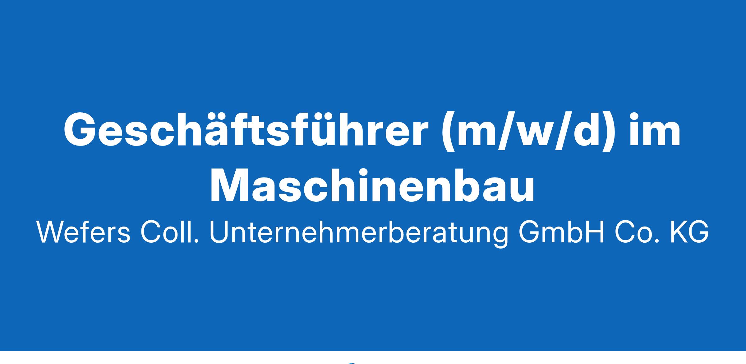 Geschäftsführer (m/w/d) im Maschinenbau Unser Mandant ist ein moderner, stetig wachsender Produktionsbetrieb und seit über 40 Jahren im Maschinenbau tätig. Mit seinen rund 160 hoch qualifizierten Mitarbeitern überzeugt unser Mandant national und international mit innovativen, durchdachten und ausgereiften Lösungen aus eigenen Standardbaureihen und kundenspezifischen Individuallösungen. Mit Blick auf Effizienz, Effektivität und Produktivität suchen wir eine gestandene Führungspersönlichkeit, die in der Geschäftsführung das operative technische Tagesgeschäft verantwortet und dabei stets die Gesamtstrategie im Blick hat. Ihre Aufgaben: In der Geschäftsführung verantworten Sie die Bereiche Produktion, Einkauf, Forschung & Entwicklung sowie den technischen Vertrieb Dabei führen Sie fachlich und disziplinarisch ein etwa 100-köpfiges Team und stellen den reibungslosen Ablauf im Tagesgeschäft sicher Stets haben Sie Marktpotentiale im Blick, sorgen für Neu- und Weiterentwicklungen der Produktwelt sowie deren aktiver Vermarktung Sie entwickeln die Maschinen und den Anlagenpark fortlaufend weiter und stellen in Ihren Bereichen effektive Prozesse und Strukturen sicher Mit allen Führungskräften, der kaufmännischen Geschäftsführung und der Inhaberfamilie arbeiten Sie eng und vertrauensvoll zusammen – auch hinsichtlich der Strategie und Unternehmensausrichtung Ihre Qualifikation: Sie haben Ihr technisches Studium (Ingenieurwesen, Maschinenbau, Materialwirtschaft, Produktmanagement etc.) abgeschlossen In der Leitung und Steuerung eines technischen Produktionsbetriebes bringen Sie mehrjährige Berufserfahrung mit, gerne auch in der zweiten Ebene als Betriebsleiter, Produktionsleiter, Entwicklungsleiter etc. Sie überzeugen mit ausgeprägtem technischen Verständnis, einer innovativen Denkweise sowie Weitblick auf Zukunftsthemen Im Tagesgeschäft überblicken Sie die Komplexität, bewegen sich sicher auf allen Unternehmensebenen und agieren mit Hands-on-Mentalität Ihr Führungsstil ist zeitgemäß, motivierend und kooperativ, wobei Sie stets Wert auf eine offene und transparente Kommunikation legen In einem wachstumsorientierten, mittelständischen Familienunternehmen agieren Sie in wichtiger Vertrauensposition der Inhaberfamilie und verantworten die technischen Themen – operativ und strategisch. Standort Landkreis Osnabrück Beschäftigungsart Vollzeit Eintrittstermin Zum nächstmöglichen Zeitpunkt Highlight Das Unternehmen auf technisch höchstem Niveau mit einem Mix aus Tradition & Innovation erfolgreich in die Zukunft führen Interesse? Dann freuen sich die Personalberater, Frau Sandra Kierstein und Herr Christian Vaske, auf Ihren Anruf. Auch wenn Sie bisher noch nicht konkret an einen Wechsel gedacht haben, wollen wir gern das Gespräch mit Ihnen aufnehmen. Ihre Bewerbungsunterlagen mit dem derzeitigen Jahresgehalt und der Kündigungsfrist senden Sie bitte unter der Kennziffer 1052410 an die nebenstehende Adresse. Vertraulichkeit und die Berücksichtigung von Sperrvermerken sind selbstverständlich. bewerber@wefersundcoll.de T +49 441 / 77919 – 11 Wefers & Coll. Unternehmerberatung GmbH & Co. KG Unter den Eichen 26 26122 Oldenburg