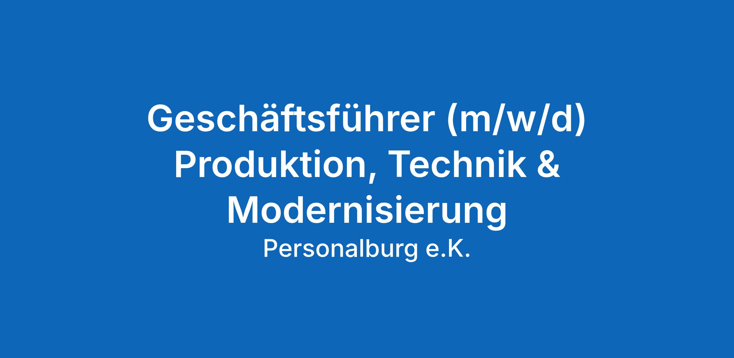 Geschäftsführer (m/w/d) Produktion, Technik & Modernisierung