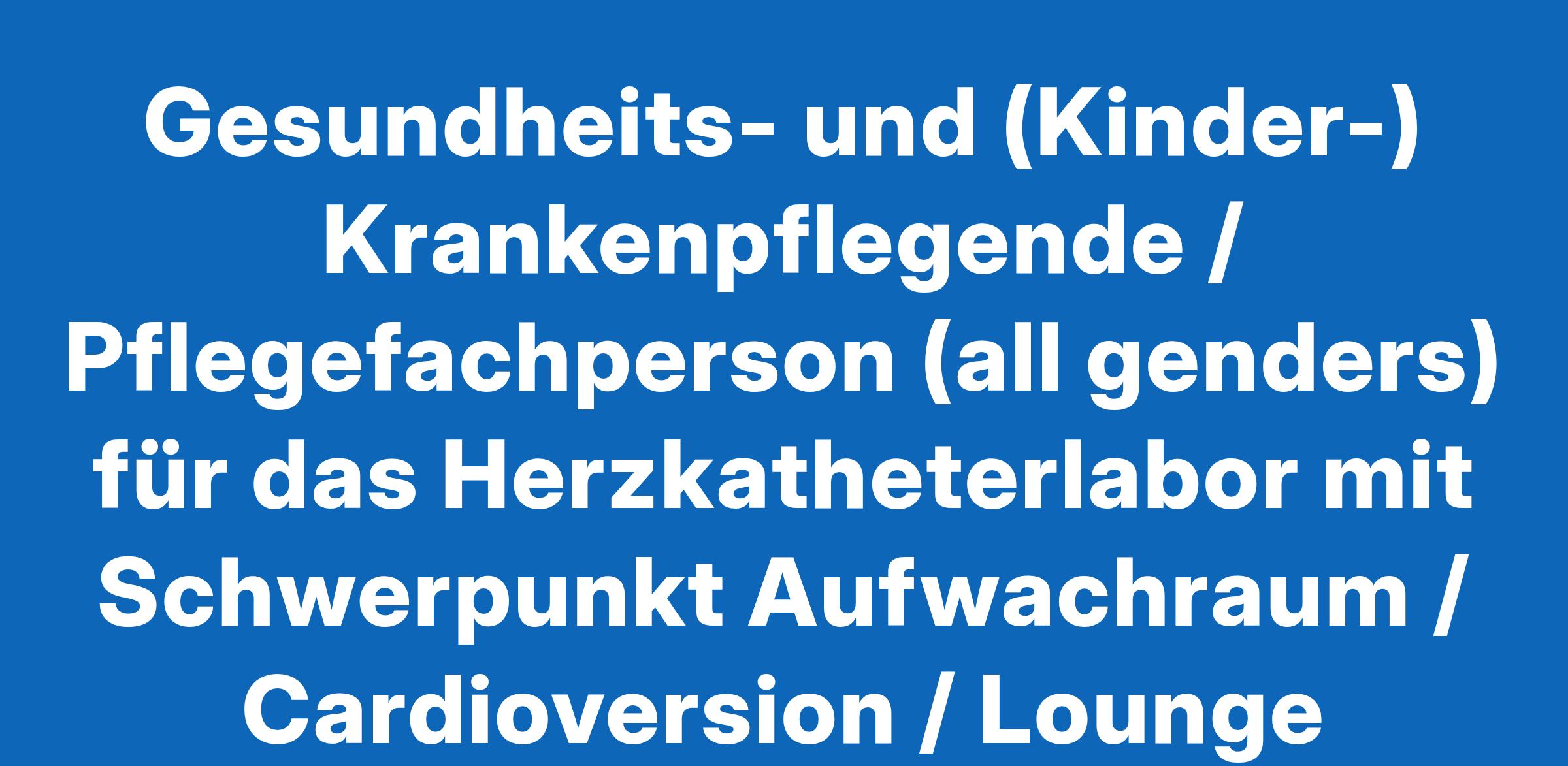 Gesundheits- und (Kinder-) Krankenpflegende / Pflegefachperson (all genders) für das Herzkatheterlabor mit Schwerpunkt Aufwachraum / Cardioversion / Lounge
