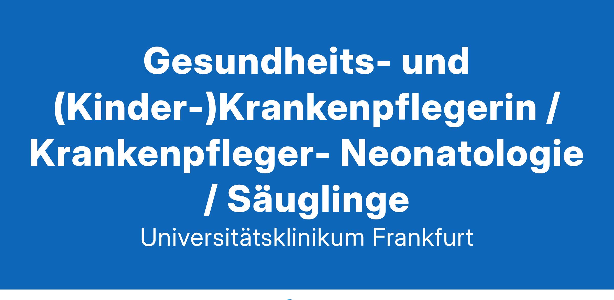 »Aus Wissen wird Gesundheit« - wir füllen dieses Motto tagtäglich mit Leben, entwickeln neue Ideen und Altbewährtes weiter. Das Universitätsklinikum Frankfurt besteht seit 1914 und unsere rund 7.500 Beschäftigten bringen sich mit ihrem Können und Wissen an den 33 Fachkliniken, klinisch theoretischen Instituten und in den Verwaltungsbereichen ein. Die enge Verbindung von Krankenversorgung mit Forschung und Lehre sowie ein Klima der Kollegialität, Internationalität und berufsgruppenübergreifender Zusammenarbeit zeichnen das Universitätsklinikum aus.Gesundheits- und (Kinder-)Krankenpflegerin / Krankenpfleger- Neonatologie / Säuglinge(wir richten uns mit dieser Ausschreibung an Bewerbende jeden Geschlechts)