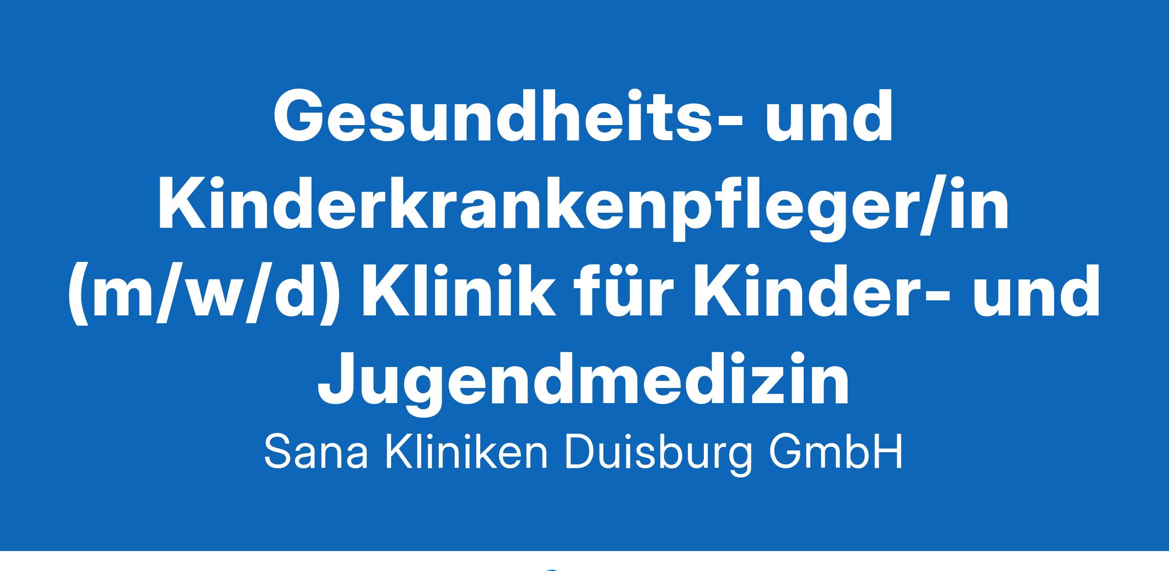 Gesundheits- und Kinderkrankenpfleger/in (m/w/d) Klinik für Kinder- und Jugendmedizin Sana Kliniken Duisburg Wir suchen für unsere Station B24 – Klinik für Kinder- und Jugendmedizin – zum nächstmöglichen Zeitpunkt eine/n Gesundheits- und Kinderkrankenpfleger/in (m/w/d) (Vollzeit – 38,5 Std./Woche – auch Teilzeit möglich), unbefristet Die Sana Kliniken Duisburg GmbH betreibt zwei Krankenhäuser: Zum einen die Wedau Kliniken in Duisburg-Wedau, zum anderen das Bertha-Krankenhaus in Duisburg-Rheinhausen. Beide Kliniken sind ein nach modernen Gesichtspunkten ausgestattetes Lehrkrankenhaus der regionalen Spitzenversorgung mit insgesamt 17 Fachabteilungen und 678 Betten. Deine Aufgaben Pflegerische Betreuung und Versorgung von Kindern Erstellen von Pflegeplanungen und Dokumentation von Pflegemaßnahmen – Evaluation von Pflegezielen und Pflegemaßnahmen Intensive Einbeziehung und Beratung der Eltern in der Versorgung, Anleitung und Pflege ihrer Kinder Offenheit für neue Strukturen und Prozessoptimierung Mitwirkung an der Weiterentwicklung der Pflegequalität Identifikation mit unserem Pflegeleitbild Einhaltung der Hygienerichtlinien Dein Profil Erfolgreich abgeschlossene Ausbildung als Gesundheits- und Kinderkrankenpfleger/in oder Pflegefachmann / Pflegefachfrau mit Vertiefung Pädiatrie Fähigkeit zur kooperativen Zusammenarbeit mit anderen Berufsgruppen Interesse und Bereitschaft zur aktiven Mitgestaltung prozessorientierter Arbeitsabläufe Organisationstalent, Sozialkompetenz, Flexibilität sowie Verantwortungsbewusstsein Teamfähigkeit und EDV-Kenntnisse Umfassende Kenntnisse im Dokumentationswesen Interesse an Fort- und Weiterbildungen Deine Vorteile Vielseitig | Eine interessante, abwechslungsreiche und verantwortungsvolle Aufgabe Leistungsgerechte Vergütung | Gemäß TVöD-K Betriebliche Altersvorsorge | Wir unterstützen dich auch im Alter Arbeitszeit | Die Arbeitszeit richtet sich nach dem derzeit gültigen Arbeitszeitmodell der Abteilung, das über den u. g. Ansprechpartner erfragt werden kann Einarbeitung | Dein Team steht dir mit Rat und Tat zur Seite und erleichtert dir damit den Einstieg Café Kanne | Nutze unsere Cafeteria zu vergünstigten Konditionen Flexibel mobil | Vergünstigtes Deutschland-Ticket oder E-Bike? Bei uns bekommst du beides! Fachbez. Fort- und Weiterbildungen | Wir unterstützen deine berufliche Weiterentwicklung E-Learning-Programme | Damit du immer up-to-date bist Gesundheitsmanagement | Deine Gesundheit liegt uns am Herzen, daher bieten wir u. a. Grippeschutzimpfungen an Familienfreundliche Unternehmenskultur | PME-Familienservice: Kinderbetreuung, Pflege von Familienangehörigen und Lebenslagencoaching Darüber hinaus bieten wir durch eine Kooperation mit der Lebenshilfe „Kita Wunderland“ exklusiv Kindergartenplätze für Kinder ab 3 bis 6 Jahren in Kliniknähe Die Sana Kliniken AG ist eine der größten Klinikgruppen in Deutschland. Das Unternehmen zählt zu den bedeutendsten Anbietern im Bereich integrierter Gesundheitsdienstleistungen. Von der Prävention über die ambulante und stationäre Versorgung bis hin zu Reha, Nachsorge, Heil- und Hilfsmitteln in unseren Sanitätshäusern sowie B2B-Services (Einkauf, Logistik, MedTech und Management-Services) versorgen wir Patienten, Unternehmen und externe Gesundheitseinrichtungen seit Jahrzehnten mit Qualitätsmedizin und exzellenten Dienstleistungen. Du hast vorab noch Fragen? Sarah Becker Bereichsleitung / Pflegedirektion Telefon 0203 733-451630 sarah.becker2@sana.de Für deine Bewerbung geht es unter Angabe der Kennziffer 88-2024 hier entlang: pflegebewerbungduisburg@sana.de Wir wertschätzen Vielfalt und begrüßen daher alle Bewerbungen – unabhängig von Geschlecht, Nationalität, ethnischer und sozialer Herkunft, Religion / Weltanschauung, Behinderung, Alter sowie sexueller Orientierung und Identität. Bitte beachte unsere Datenschutzhinweise unter: sana.de/datenschutz Wir leben Krankenhaus – gerne mit dir! Wir leben Krankenhaus – gerne mit dir!