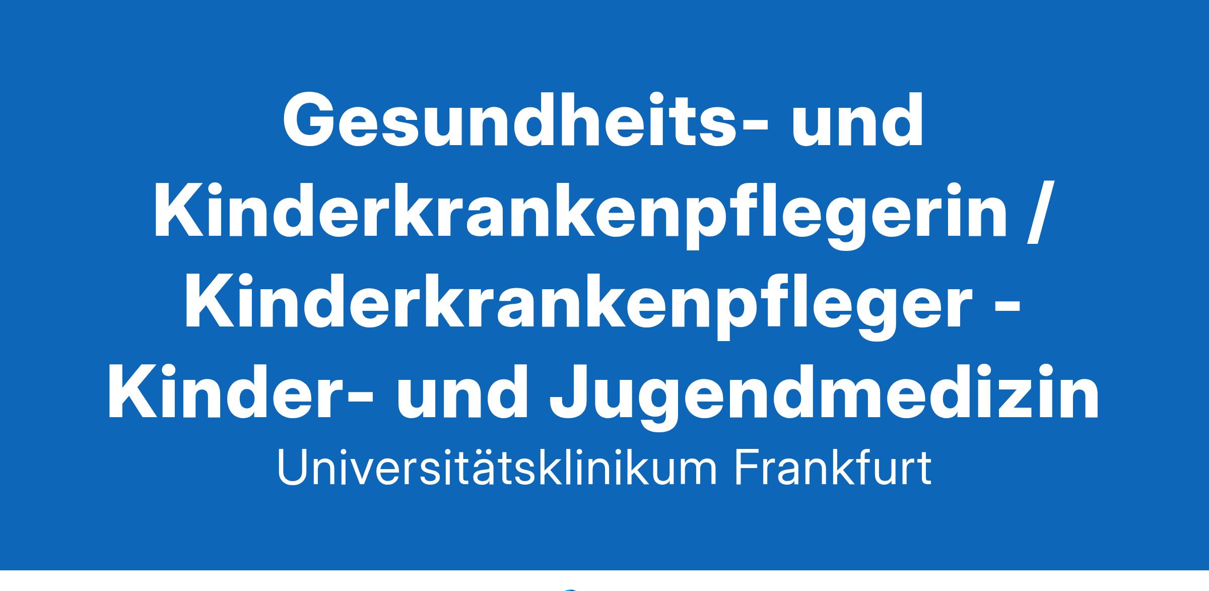 »Aus Wissen wird Gesundheit« - wir füllen dieses Motto tagtäglich mit Leben, entwickeln neue Ideen und Altbewährtes weiter. Das Universitätsklinikum Frankfurt besteht seit 1914 und unsere rund 7.400 Beschäftigte bringen sich mit ihrem Können und Wissen an den 33 Fachkliniken, klinisch theoretischen Instituten und in den Verwaltungsbereichen ein. Die enge Verbindung von Krankenversorgung mit Forschung und Lehre sowie ein Klima der Kollegialität, Internationalität und berufsgruppenübergreifender Zusammenarbeit zeichnen das Universitätsklinikum aus.Gesundheits- und Kinderkrankenpflegerin / Kinderkrankenpfleger - Kinder- und Jugendmedizin(wir richten uns mit dieser Ausschreibung an Bewerbende jeden Geschlechts)