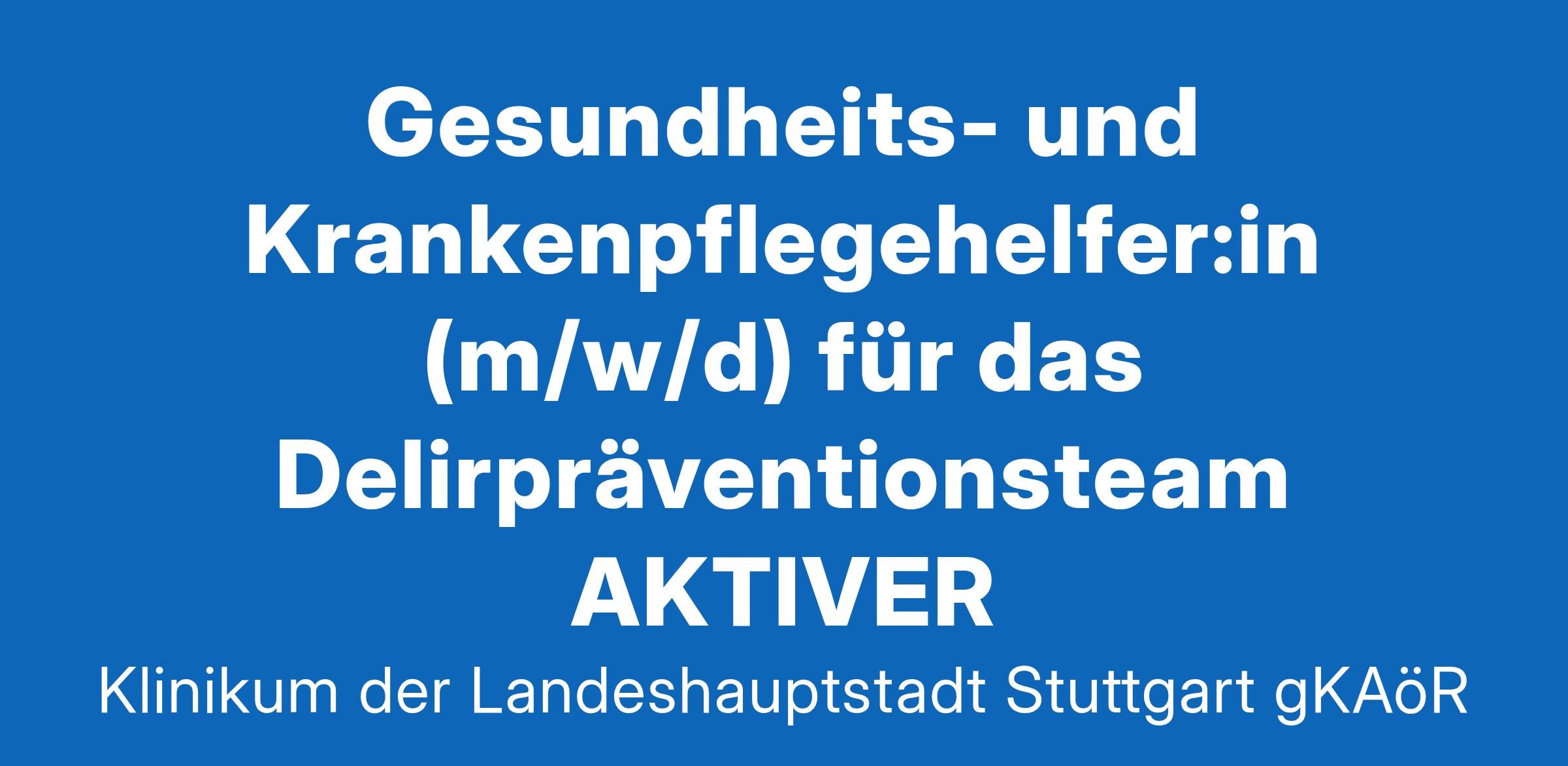 Klinikum Stuttgart - Entscheiden Sie sich für etwas Großes. Wir sind mit unseren drei Häusern „Katharinenhospital“, „Olgahospital“ und „Krankenhaus Bad Cannstatt“ das größte Klinikum in Baden-Württemberg. Über 9000 Mitarbeitende versorgen auf den Stationen, in Operationssälen, Funktionsbereichen die Patient:innen oder sind in Verwaltung, Technik oder IT für den reibungslosen Klinikbetrieb verantwortlich. An zwei attraktiv gelegenen Standorten in Stuttgart bieten wir Ihnen in über 50 Kliniken und Instituten als Maximalversorger und akademisches Lehrkrankenhaus der Universität Tübingen einen sinnstiftenden und zukunftsorientierten Arbeitsplatz. Dabei gilt immer: “Starkes Team. Starkes Klinikum. “Ihre Aufgaben: Für unser Delirteam suchen wir eine/n qualifizierte/n Gesundheits- und Krankenpflegehelfer:in. Im Delirteam AKTIVER übernehmen Sie folgende Aufgaben:Umsetzung von delirpräventiven Maßnahmen bei Patient:innen ab 65 JahrenBetreuung von Patientinnen und Patienten mit deliranten SymptomenIndividuelle spezialisierte Betreuung von Patient:innen mit kognitiven Einschränkungen wie Demenz oder Delir in Abstimmung mit den PflegefachpersonenDurchführung von spezifischen, nicht-medikamentösen Interventionen bei älteren, akut erkrankten Patient:innen mit kognitiven Einschränkungen wieOrientierungs-/ AktivbesuchMobilisierungMahlzeitenbegleitungDiagnostikbegleitungSchlafförderung/ EntspannungDen Patient:innen Orientierung geben (zur Person, zum Ort, zur Situation, zur Zeit) z.B. mit Orientierungstafeln, Kalendern, der Uhrzeit und UmgebungsgestaltungDurchführung von Freizeitgestaltungs-/ Aktivierungsmaßnahmen wie Gesellschaftsspiele spielen, Musik hören, gemeinsam Singen, Lesen, Zeichnen und BastelnBerücksichtigung der Informationen aus der Anamnese bzw. Biografiebogen bei der Durchführung der InterventionenEinbeziehen der AngehörigenUnterstützung bei der Mobilisation, beim Transfer, Bewegungsübungen im Bett offerieren, dazu anleitenEvaluation der durchgeführten InterventionenMultiprofessionelle Zusammenarbeit mit dem Pflegepersonal und dem ärztlichen Dienst, um eine optimales Delirmanagement zu erreichenFachgerechte DokumentationWir erwarten:Sie sind examinierte/r Gesundheits- und Krankenpflegehelfer:in (m/w/d)Fachkenntnisse im Bereich Demenz, Delirprävention/ -management und Berufserfahrung in der Arbeit mit älteren Menschen im Klinikbereich sind wünschenswertSie haben Interesse an der Arbeit und Unterstützung von Menschen in schwierigen LebenssituationenSie haben Erfahrung um Umgang mit Menschen mit einer Demenz bzw. einem Delir, in der Aktivierung, Betreuung und im Umgang mit älteren MenschenEngagement und Teamfähigkeit sind für Sie selbstverständlichInteresse an Fort- und WeiterbildungenWir bieten:Ein verantwortungsvolles und vielseitiges AufgabengebietEine kooperative, vertrauensvolle Zusammenarbeit mit guter Arbeitsatmosphäre und Integration in ein multiprofessionelles und interprofessionelles TeamEin individuelles, strukturiertes und fachspezifisches EinarbeitungskonzeptUnterstützungsangebote zur Vereinbarkeit von Beruf und Familie:Familienfreundliche ArbeitszeitmodelleBetriebliche Kindertageseinrichtung und Möglichkeit der FerienbetreuungGroßes Angebot an innerbetrieblichen Aus-, Fort- und Weiterbildungsmöglichkeiten mit rund 120 Kursplätzen über unsere Akademie für Gesundheitsberufe sowie vielfältige AufstiegsmöglichkeitenWeitere Leistungen: Betriebliches Gesundheitsmanagement, Sportangebote, vergünstigtes Essen im Betriebsrestaurant, Firmenticket VVS/ Deutschlandticket, JobradEine leistungsgerechte, tariflich abgesicherte Vergütung nach den Tarifverträgen des öffentlichen Dienstes (TVÖD)Eine überwiegend arbeitgeberfinanzierte betriebliche Altersvorsorge (ZVK)Ein unbefristetes ArbeitsverhältnisDie Stadt Stuttgart bietet als Großstadt vielseitige Kultur- und Freizeitangebote. Das Klinikum Stuttgart ist seit 2008 als familienfreundliches Unternehmen durch „berufundfamilie GmbH“ zertifiziertFür Fragen und Informationen steht Ihnen die Pflegerische Zentrumsleitung Frau Cathleen Koch (Telefon: 0711 278-52430) zur Verfügung.