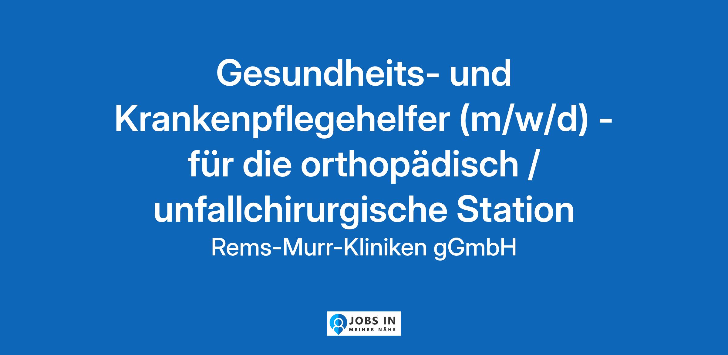 Wir suchen zum nächstmöglichen Zeitpunkt in Voll- oder Teilzeit für unsere Klinik Schorndorf einen