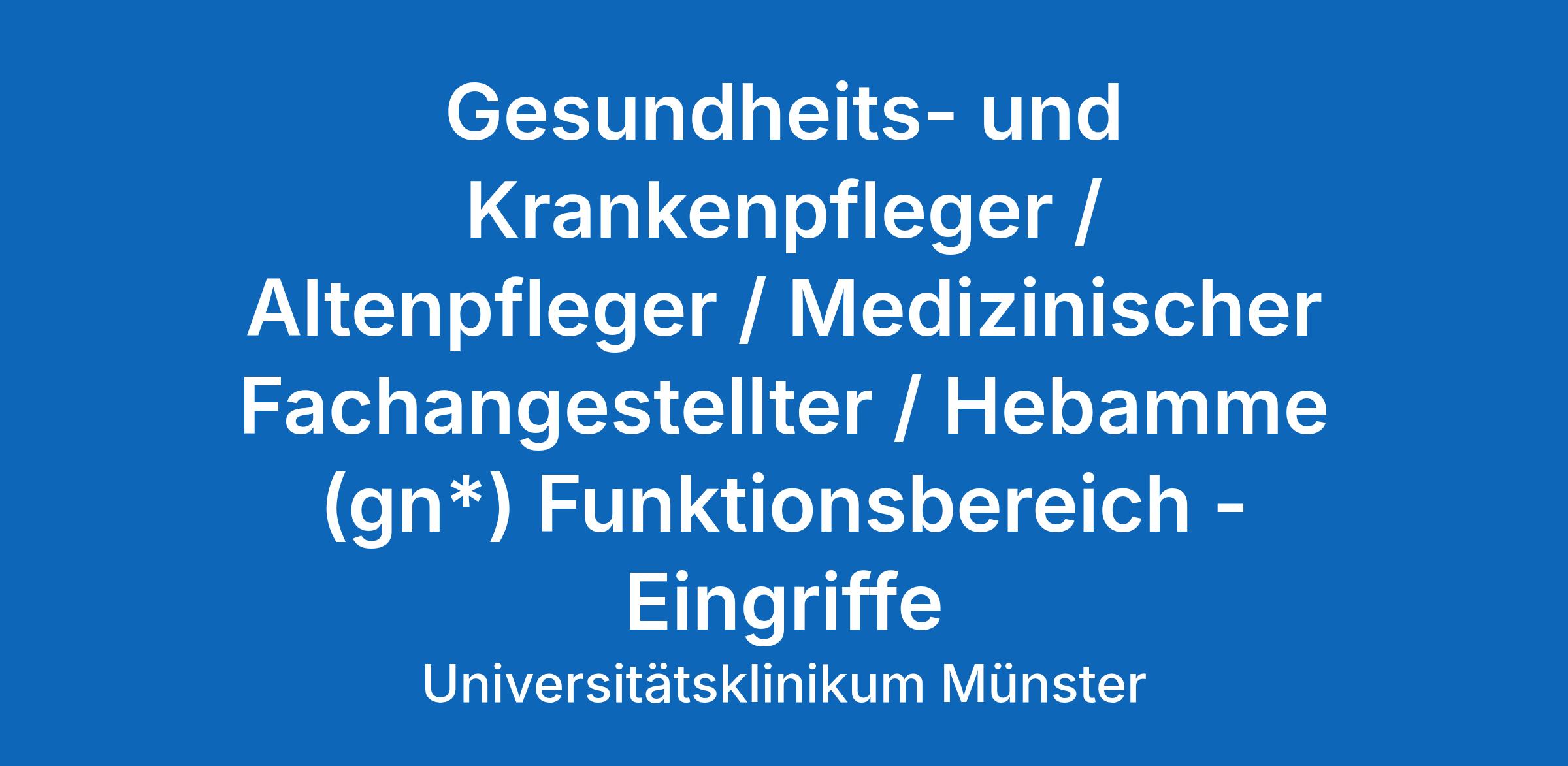 Gesundheits- und Krankenpfleger / Altenpfleger / Medizinischer Fachangestellter / Hebamme (gn*) Funktionsbereich – Eingriffe
