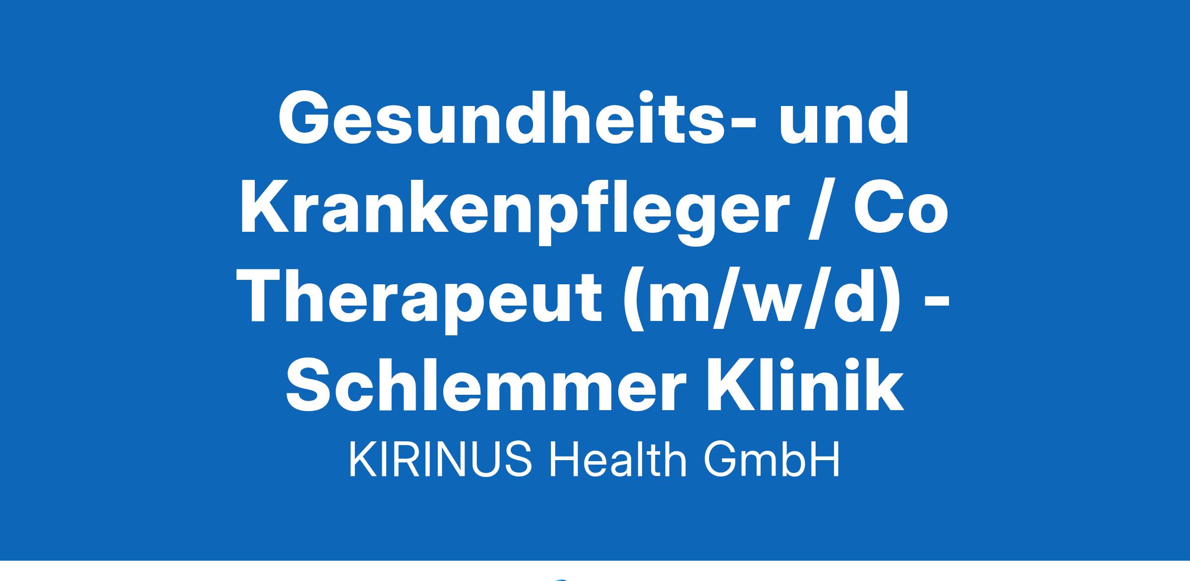 Gesundheits- und Krankenpfleger / Co Therapeut (m/w/d) - Schlemmer Klinik