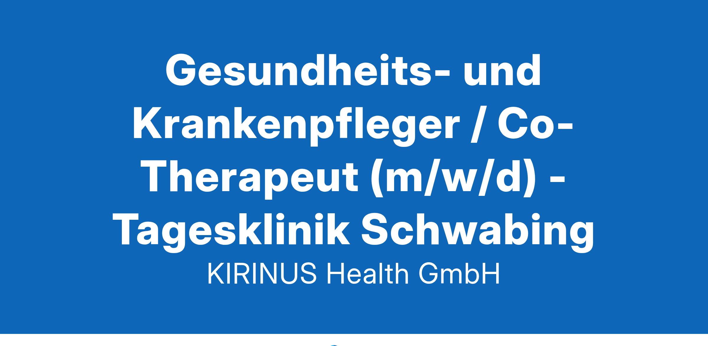 Gesundheits- und Krankenpfleger / Co-Therapeut (m/w/d) - Tagesklinik Schwabing