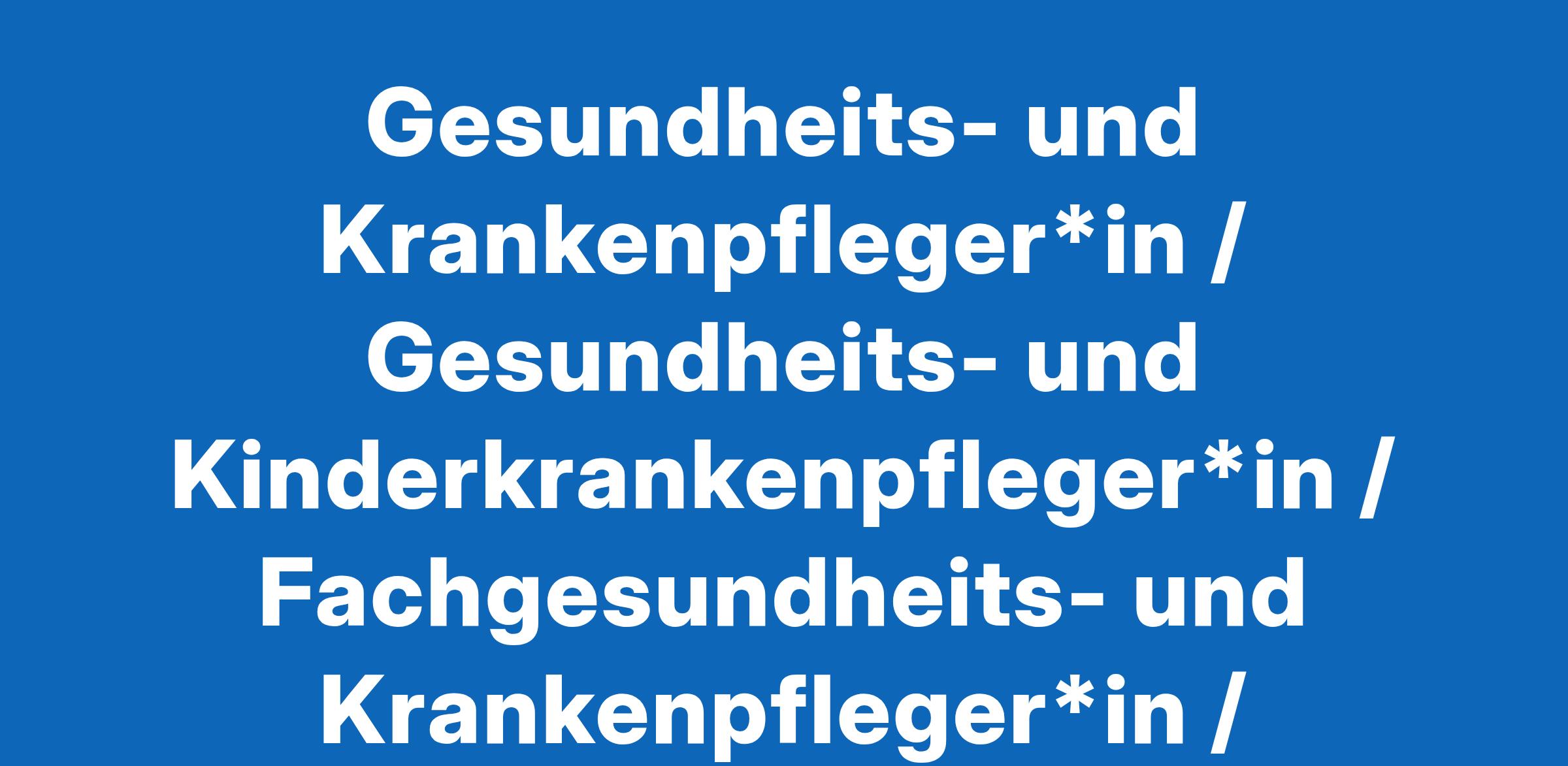 Gesundheits- und Krankenpfleger*in / Gesundheits- und Kinderkrankenpfleger*in / Fachgesundheits- und Krankenpfleger*in / Fachgesundheits- und Kinderkrankenpfleger*in für Anästhesie und Intensivpflege