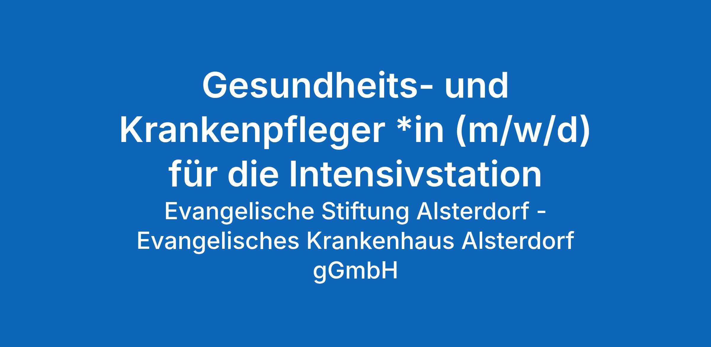 Gesundheits- und Krankenpfleger *in (m/w/d) für die Intensivstation