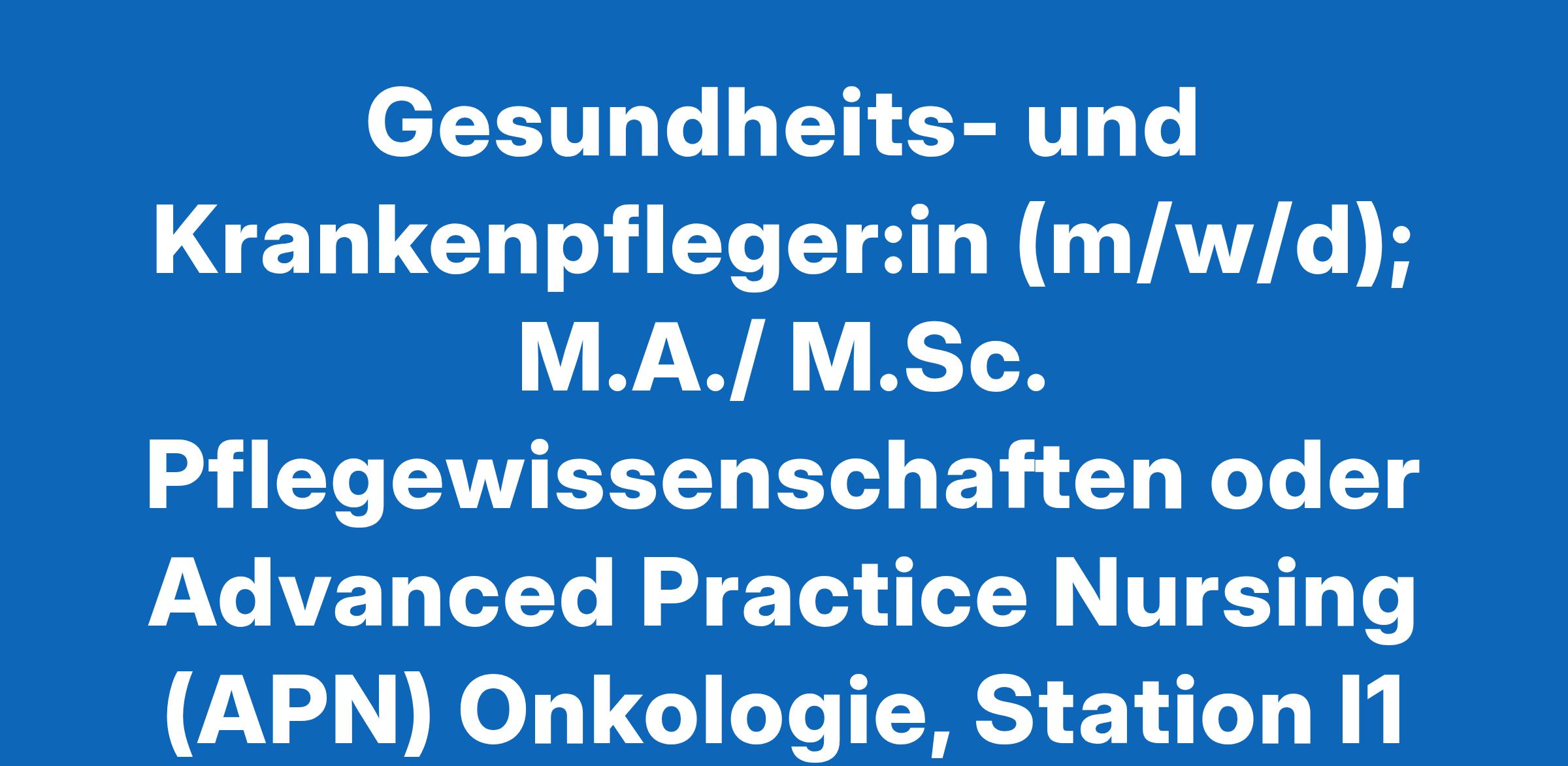 Klinikum Stuttgart - Entscheiden Sie sich für etwas Großes. Wir sind mit unseren drei Häusern „Katharinenhospital“, „Olgahospital“ und „Krankenhaus Bad Cannstatt“ das größte Klinikum in Baden-Württemberg. Über 9000 Mitarbeitende versorgen auf den Stationen, in Operationssälen, Funktionsbereichen die Patient:innen oder sind in Verwaltung, Technik oder IT für den reibungslosen Klinikbetrieb verantwortlich. An zwei attraktiv gelegenen Standorten in Stuttgart bieten wir Ihnen in über 50 Kliniken und Instituten als Maximalversorger und akademisches Lehrkrankenhaus der Universität Tübingen einen sinnstiftenden und zukunftsorientierten Arbeitsplatz. Dabei gilt immer: “Starkes Team. Starkes Klinikum. “Ihre Aufgaben: Für unsere onkologischen Bereiche auf den Stationen I1 und I3 suchen wir eine:n qualifizierte:n Gesundheits- und Krankenpfleger:in (m/w/d) mit der Qualifikation zur Pflegeexpert:in APN (Advanced Practice Nurse). Als Pflegeexpert:in APN (m/w/d) in der Onkologie übernehmen Sie unter anderem folgende Aufgaben:Individuelle, spezialisierte Pflege von Patient:innen mit bereichsspezifischen Erkrankungen, Symptomen und PflegeproblemenBeratung, Anleitung und Schulung von Patienten:innen, Angehörigen und den Berufsgruppen im interdisziplinären TeamPlanung und Durchführung von Fallbesprechungen, Evaluation des Versorgungsprozesses der Patienten:innenDurchführung eines PflegekonsildienstesLeitung von Arbeits- und ProjektgruppenKonzeptentwicklungImplementierung von evidenzbasierten PflegeinterventionenPlanung und Durchführung von Evaluationen auf Basis wissenschaftlicher GütekriterienMentoring und Begleitung für Studierende und akademisierte PflegefachkräfteMitwirkung in der Aus-, Fort- und Weiterbildung sowie LehrePflegewissenschaftliche Betreuung, Begleitung und Leitung von Pflegeforschungsprojekten, Verfassen von PublikationenQualitätssicherung, Unterstützung bei AuditsAktive Mitgestaltung einer pflegerischen Station / eines BereichesBeratung des ManagementsAusbau und aktive Mitgestaltung der Rolle Pflegeexpert:in APN in der NotaufnahmeWir erwarten:Sie sind examinierte/r Gesundheits- und Krankenpfleger:in (m/w/d)Sie verfügen über ein abgeschlossenes wissenschaftliches Hochschulstudium (M.A./M.Sc.) in Pflegewissenschaften, Advanced Practice Nursing oder einem vergleichbaren StudiengangSie verfügen über fundierte Fachkenntnisse u.a. im Bereich der NotaufnahmeSie verfügen über eine abgeschlossene Fachweiterbildung Notfallpflege oder haben vor diese zeitnah zu beginnenSie besitzen umfassende pflegerische und pflegewissenschaftliche KompetenzenSie haben Organisations-, Kommunikationskompetenz, VerantwortungsbewusstseinSie verfügen über eine hohe soziale Kompetenz mit der Fähigkeit zur berufsübergreifenden koordinierenden ZusammenarbeitEngagement und Teamfähigkeit sind für Sie selbstverständlichSie sind offen für neue Strukturen und Prozessoptimierungen und bringen die Bereitschaft mit, neue Wege zu gehenSie sind interessiert an Fort- und WeiterbildungenWir bieten:Ein verantwortungsvolles und vielseitiges AufgabengebietEine kooperative, vertrauensvolle Zusammenarbeit mit guter Arbeitsatmosphäre und Integration in ein multiprofessionelles und interprofessionelles TeamUnterstützungsangebote zur Vereinbarkeit von Beruf und Familie:Familienfreundliche ArbeitszeitmodelleBetriebliche Kindertageseinrichtung und Möglichkeit der FerienbetreuungGroßes Angebot an innerbetrieblichen Aus-, Fort- und Weiterbildungsmöglichkeiten mit rund 120 Kursplätzen über unsere Akademie für Gesundheitsberufe sowie vielfältige AufstiegsmöglichkeitenWeitere Leistungen: Betriebliches Gesundheitsmanagement, Sportangebote, vergünstigtes Essen im Betriebsrestaurant, Firmenticket VVS, Übernahme DeutschlandticketEine leistungsgerechte, tariflich abgesicherte Vergütung nach den Tarifverträgen des öffentlichen Dienstes (TVÖD)Eine überwiegend arbeitgeberfinanzierte betriebliche Altersvorsorge (ZVK)Ein unbefristetes ArbeitsverhältnisDie Stadt Stuttgart bietet als Großstadt vielseitige Kultur- und Freizeitangebote.Das Klinikum Stuttgart ist seit 2008 als familienfreundliches Unternehmen durch „berufundfamilie GmbH“ zertifiziertFür Fragen und Informationen steht Ihnen Herr Oliver Lang (Pflegerische Zentrumsleitung), unter 0711/278 - 32050 zur Verfügung.