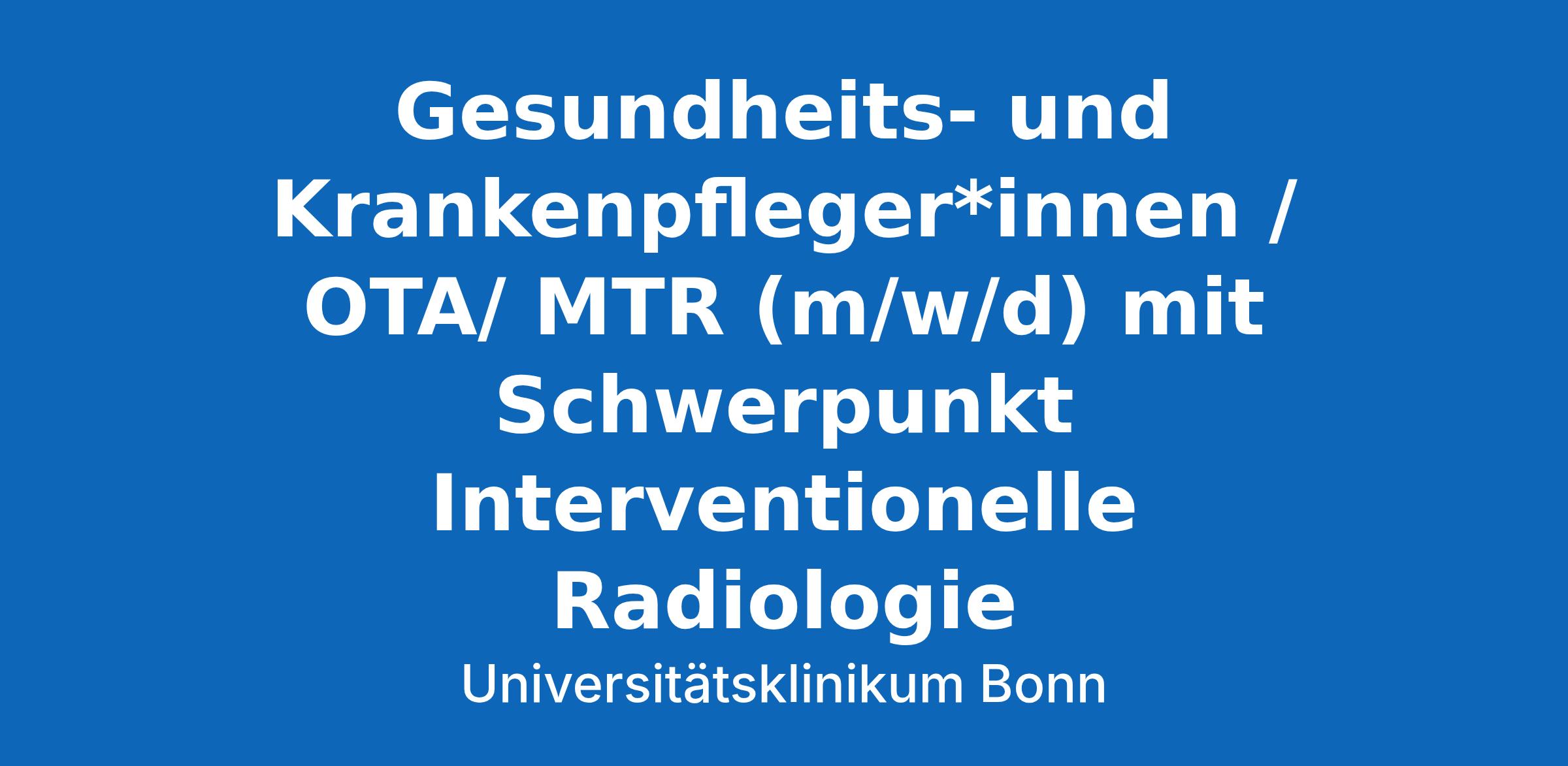 In der Klinik für Diagnostische und Interventionelle Radiologie des Universitätsklinikums Bonn ist zum nächstmöglichen Zeitpunkt folgende Stelle in Vollzeit (38,5 Std./Woche) / Teilzeit zu besetzen: