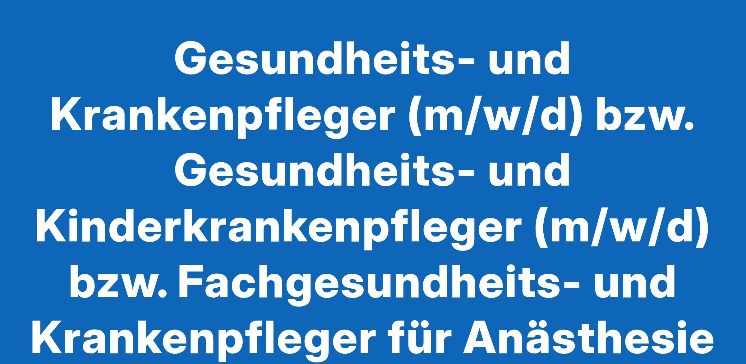 Gesundheits- und Krankenpfleger (m/w/d) bzw. Gesundheits- und Kinderkrankenpfleger (m/w/d) bzw. Fachgesundheits- und Krankenpfleger für Anästhesie und Intensivpflege (m/w/d) bzw. Fachgesundheits- und