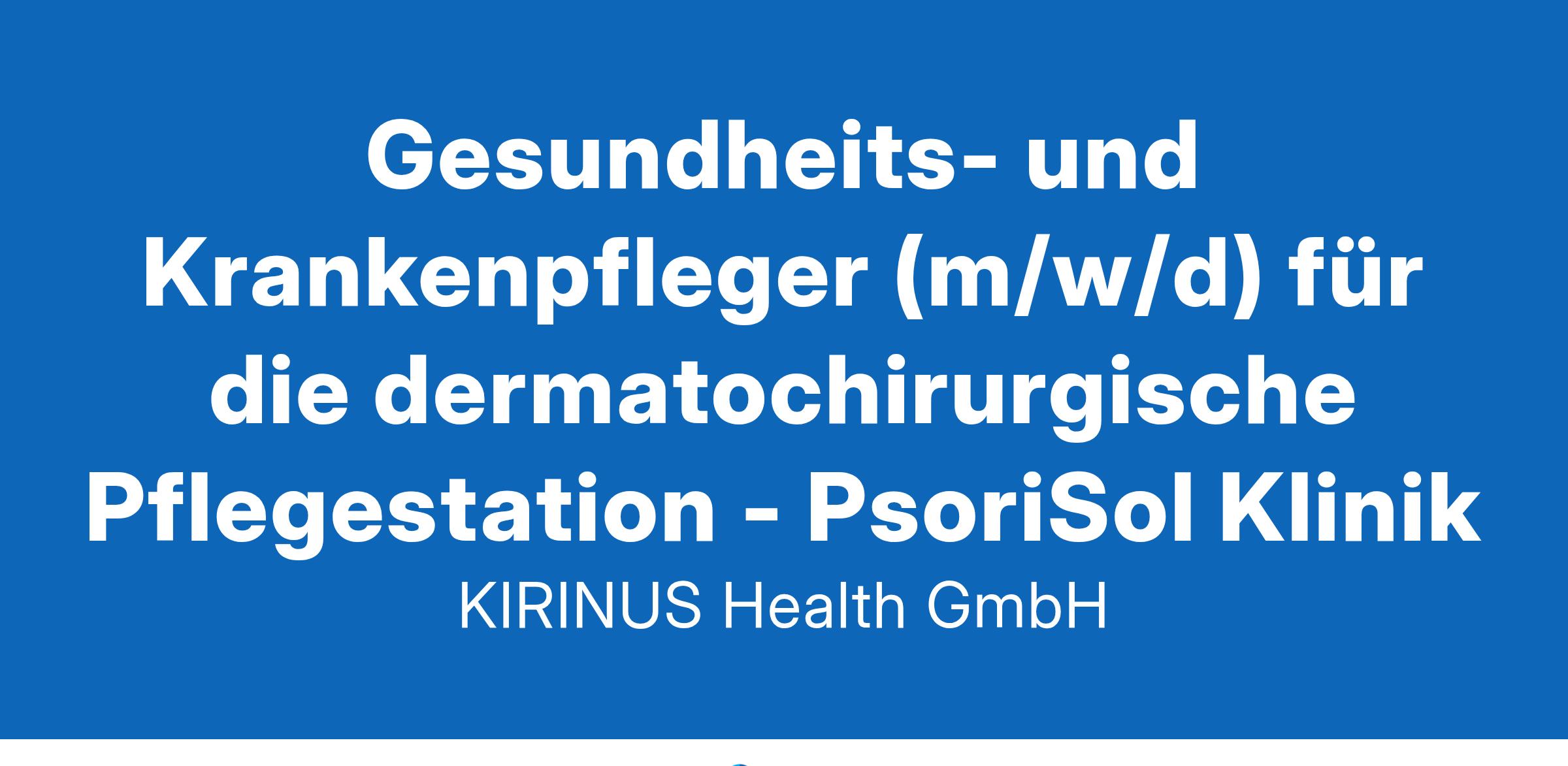 Gesundheits- und Krankenpfleger (m/w/d) für die dermatochirurgische Pflegestation - PsoriSol Klinik