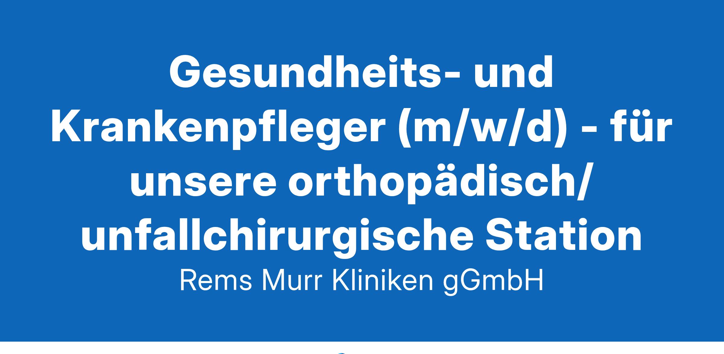 Intention Pflege!Wir suchen zum nächstmöglichen Zeitpunkt in Voll- oder Teilzeit für unsere Klinik Schorndorf einenGesundheits- und Krankenpfleger (m/w/d) - für unsere orthopädisch/ unfallchirurgische Stationfür unsereReferenznummer: S 1 156-23Ihre AufgabenPlanung, Durchführung, Evaluation und Dokumentation der Grund- und Behandlungspflege unter Berücksichtigung der individuellen Bedürfnisse der Patienten sowie den aktuellen pflegewissenschaftlichen Erkenntnissen und Expertenstandards