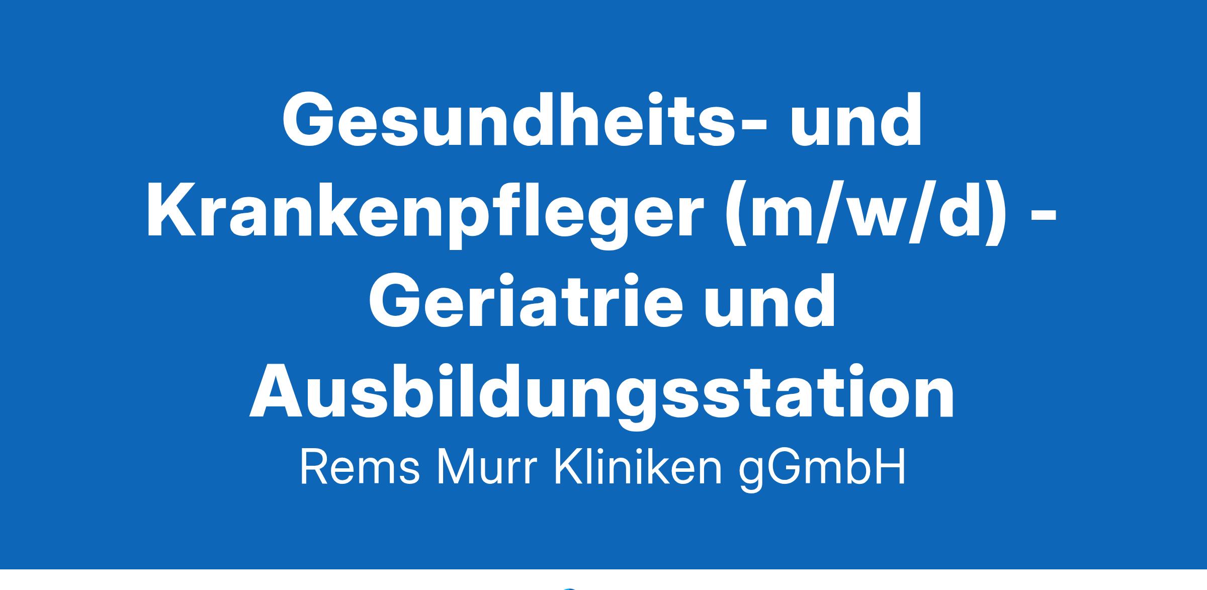 Wir erstatten Stellenanzeige...!Wir suchen zum nächstmöglichen Zeitpunkt in Voll- oder Teilzeit für unsere Klinik Schorndorf einenGesundheits- und Krankenpfleger (m/w/d) - Geriatrie und Ausbildungsstationfür unsere geriatrische Station mit integrierter AusbildungsstationReferenznummer: S-1-281-19Ihre AufgabenSicherstellung einer optimalen Patientenversorgung unter Berücksichtigung qualitativer und wirtschaftlicher Rahmenbedingungen