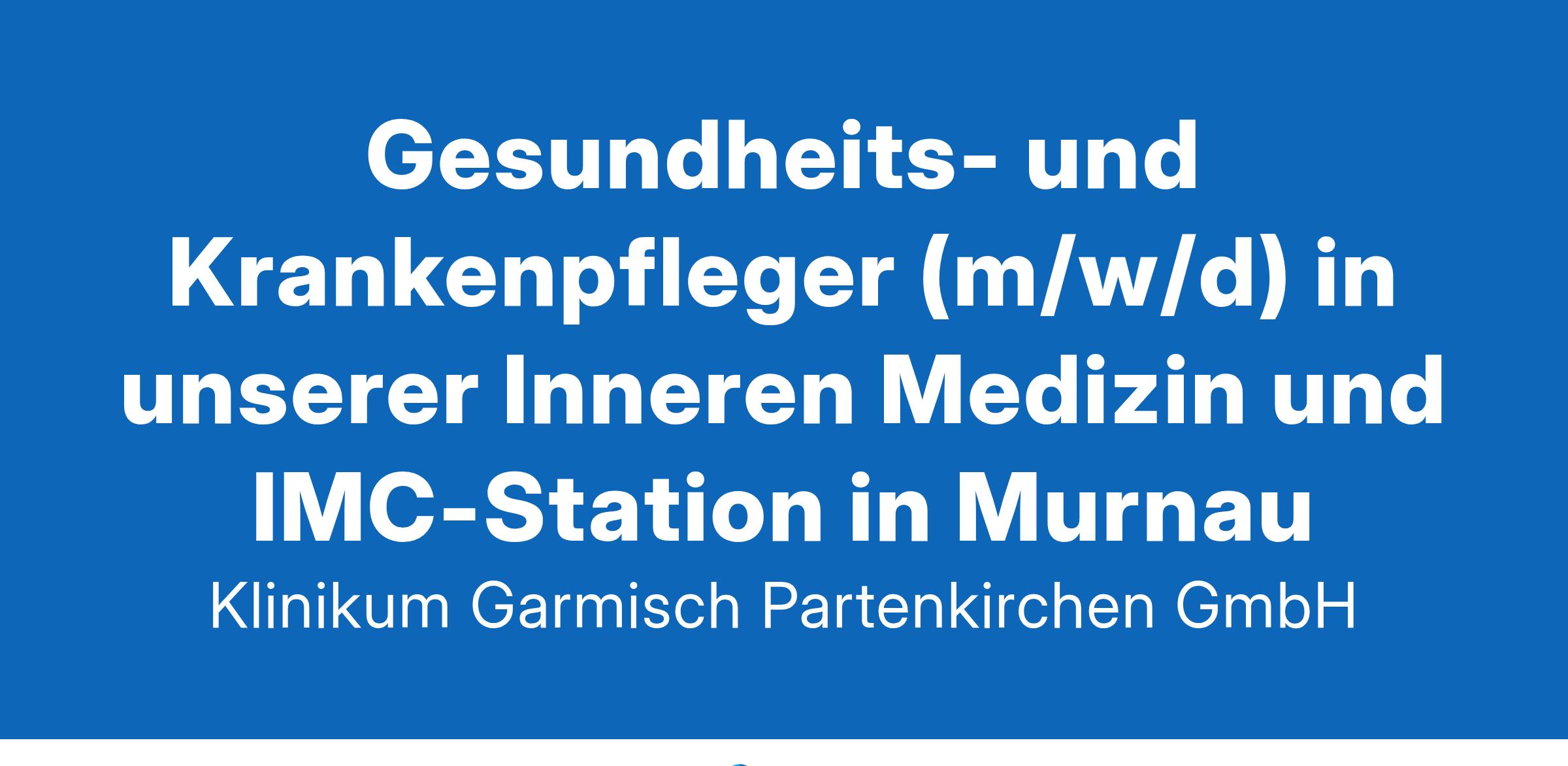 Gesundheits- und Krankenpfleger (m/w/d) in unserer Inneren Medizin und IMC-Station in MurnauDARAUF KANNST DU DICH FREUENAttraktive Freizeitmöglichkeiten direkt vor der Tür und vielfältige hausinterne Sportangebote (BGM)Tarifgebundene, sichere Arbeitsverhältnisse (TVöD-K)MitarbeiterwohnungenKinderbetreuung durch klinikeigene Kinderkrippen- & KindergartenplätzeStrukturierte Einarbeitung in Deinem BereichVielfältige Fort- und Weiterbildungsmöglichkeiten sowie individuelle FörderungDienstradleasingDAS BESONDERE IN DEINEM BEREICHModern ausgestattete Station in MurnauBreites Spektrum der Inneren Medizin, insbesondere Onkologie, Gastroenterologie und Kardiologie, sowie eine IMC-StationDEIN BEITRAG FÜR DEIN TEAMBewerbe Dich auch mit einer der folgenden Qualifikationen (m/w/d): Gesundheits- und Kinderkrankenpfleger, Gesundheits- und Kinderkrankenpflegerin, Altenpfleger, Altenpflegerin, Krankenpfleger, Krankenschwester, Pflegefachmann, PflegefachfrauDein direkter Draht zu uns:bewerbung@klinikum-gap.de