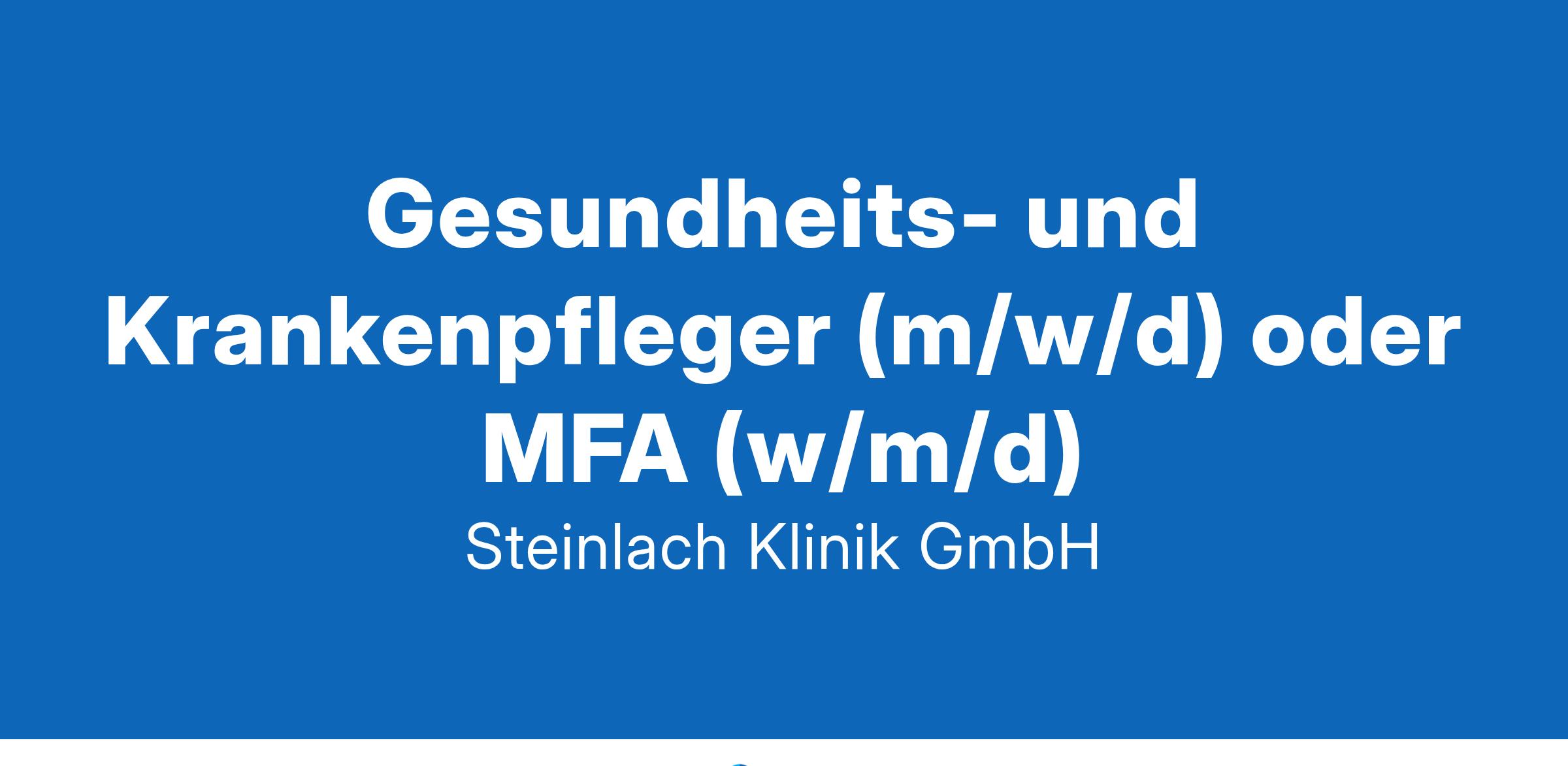 Mit ca. 2.000 Operationen im Jahr behandeln wir sowohl stationäre als auch ambulante Patienten. Weitere Informationen finden Sie auf unserer Homepage: www.steinlach-klinik.com Wir suchen zur Unterstützung unseres Stations-Teams zum nächstmöglichen Zeitpunkt einen Gesundheits- und Krankenpfleger (m/w/d) oder MFA (w/m/d) Wir bieten: Unbefristetes Arbeitsverhältnis in Voll- oder Teilzeit Modern ausgestatteten Arbeitsplatz Spannendes Arbeitsumfeld in einem motivierten dynamischen Team mit der Möglichkeit zur Mitgestaltung unserer Klinik Ihre Tätigkeiten: Durchführung diagnostischer und therapeutischer Maßnahmen nach ärztlicher Anordnung Begleitung bei der ärztlichen Visite Patientenvorbereitung für die Operation Übernahme von Patienten aus dem Aufwachbereich Aufnahme und Entlassung von ambulanten und stationären Patienten Betreuung der Prämedikationssprechstunde Pflegeanamnese, Pflegeplanung und Pflegedokumentation Wir erwarten: Abgeschlossene Ausbildung als Gesundheits- und Krankenpfleger (m/w/d) oder als MFA (m/w/d) Freude an einer hoch qualifizierten Patientenversorgung Sensibilität im Umgang mit Patienten Flexibilität, Einsatzbereitschaft sowie eine eigenverantwortliche und gewissenhafte Arbeitsweise Bei Interesse oder Nachfragen wenden Sie sich an: Diana Dehner, Tel.: 07473 9415-32, E-Mail: diana.dehner[AT]synlab.com oder senden Sie Ihre Bewerbungsunterlagen an: Steinlach Klinik GmbH