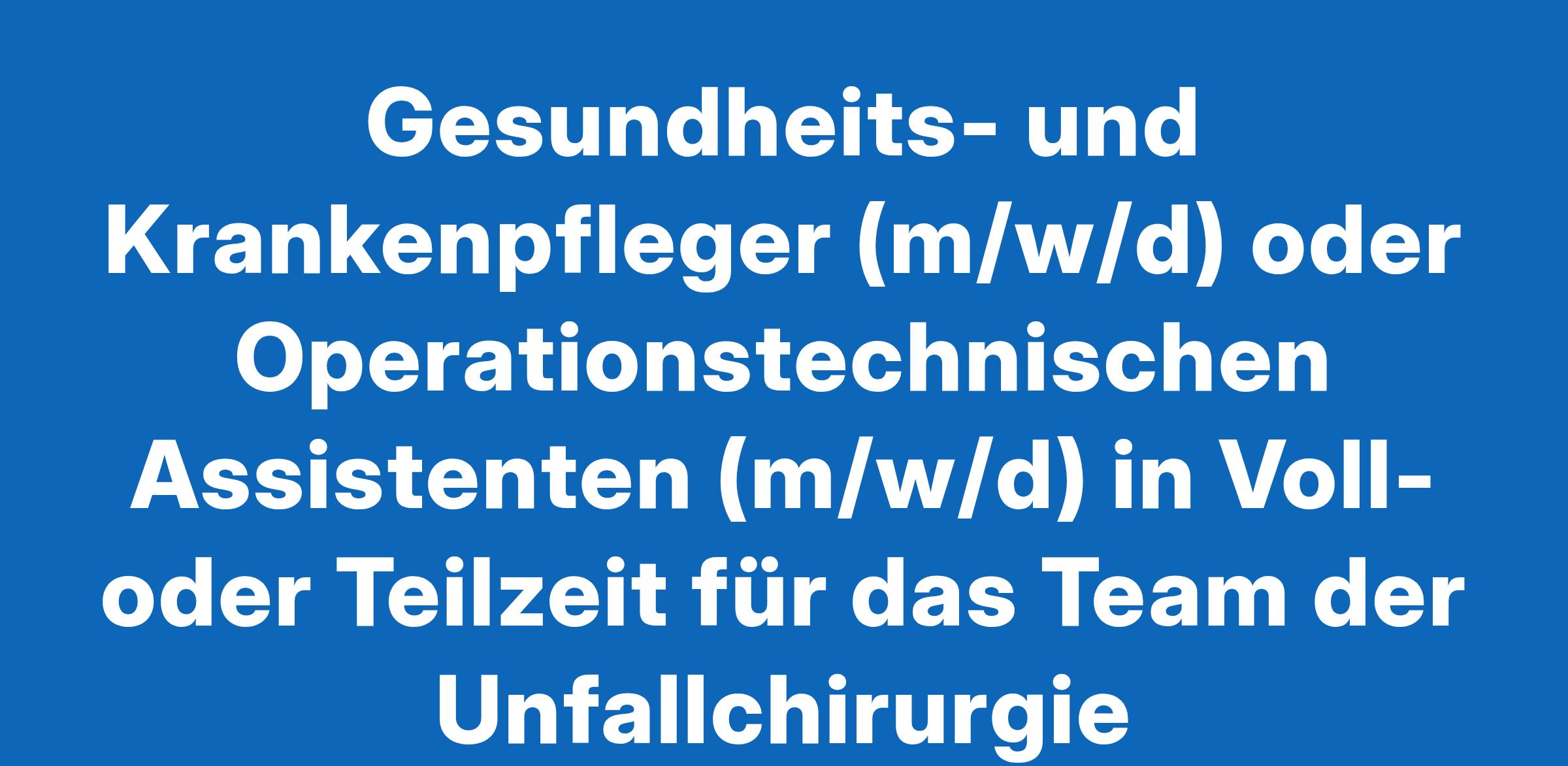 Gesundheits- und Krankenpfleger (m/w/d) oder Operationstechnischen Assistenten (m/w/d) in Voll- oder Teilzeit für das Team der Unfallchirurgie