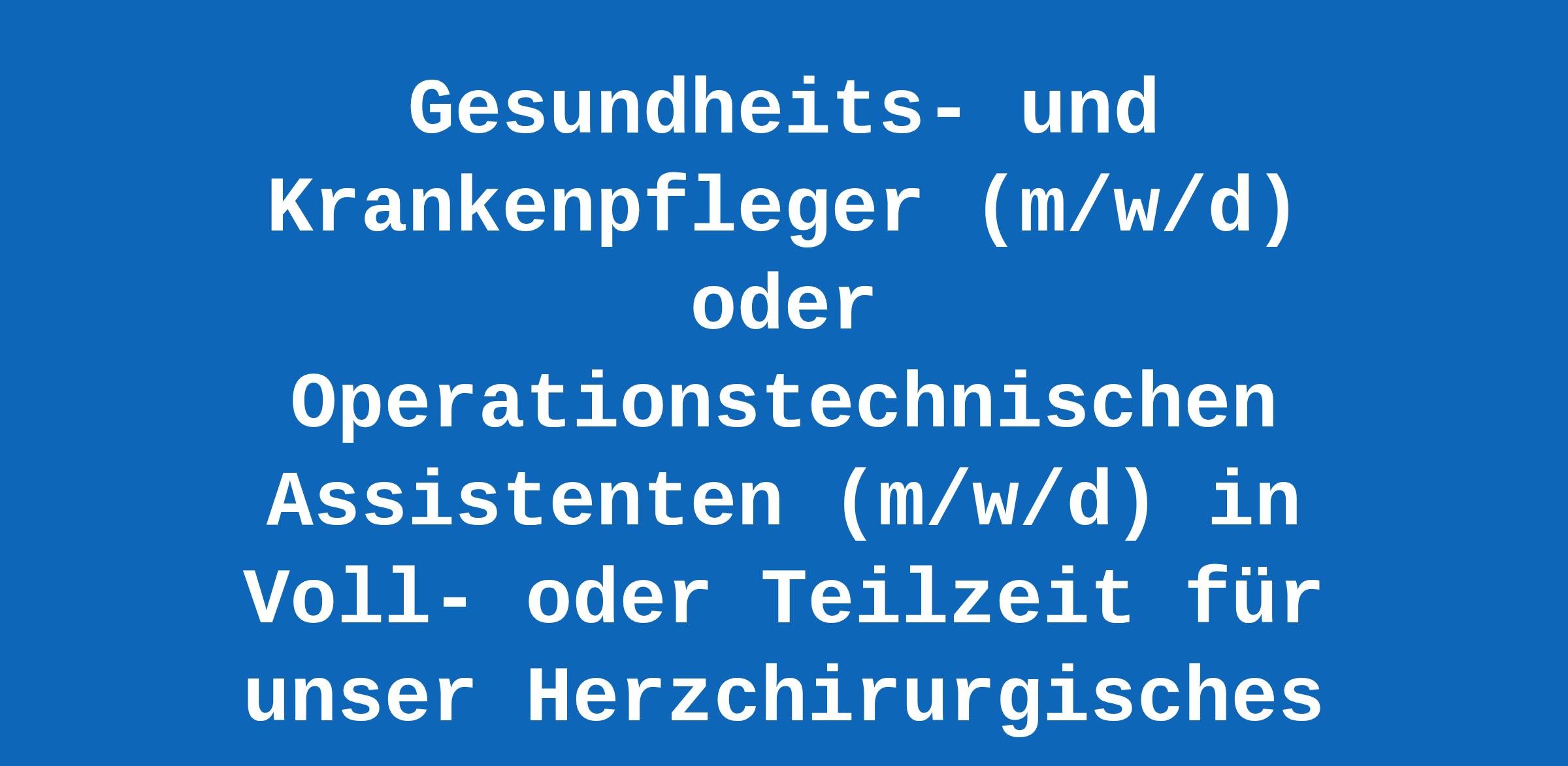 Gesundheits- und Krankenpfleger (m/w/d) oder Operationstechnischen Assistenten (m/w/d) in Voll- oder Teilzeit für unser Herzchirurgisches Team