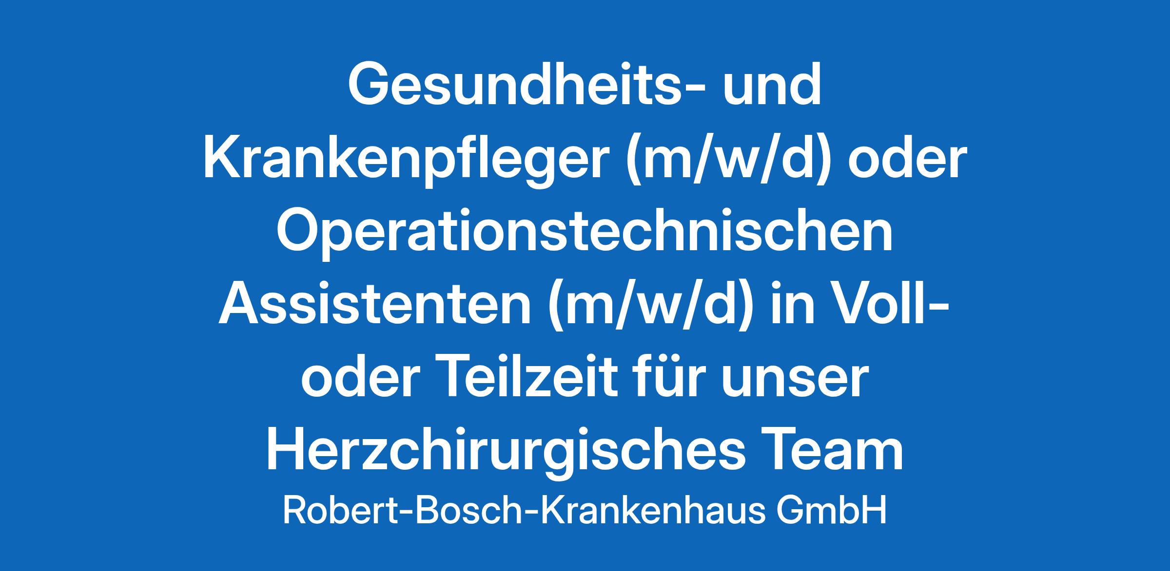 Gesundheits- und Krankenpfleger (m/w/d) oder Operationstechnischen Assistenten (m/w/d) in Voll- oder Teilzeit für unser Herzchirurgisches Team