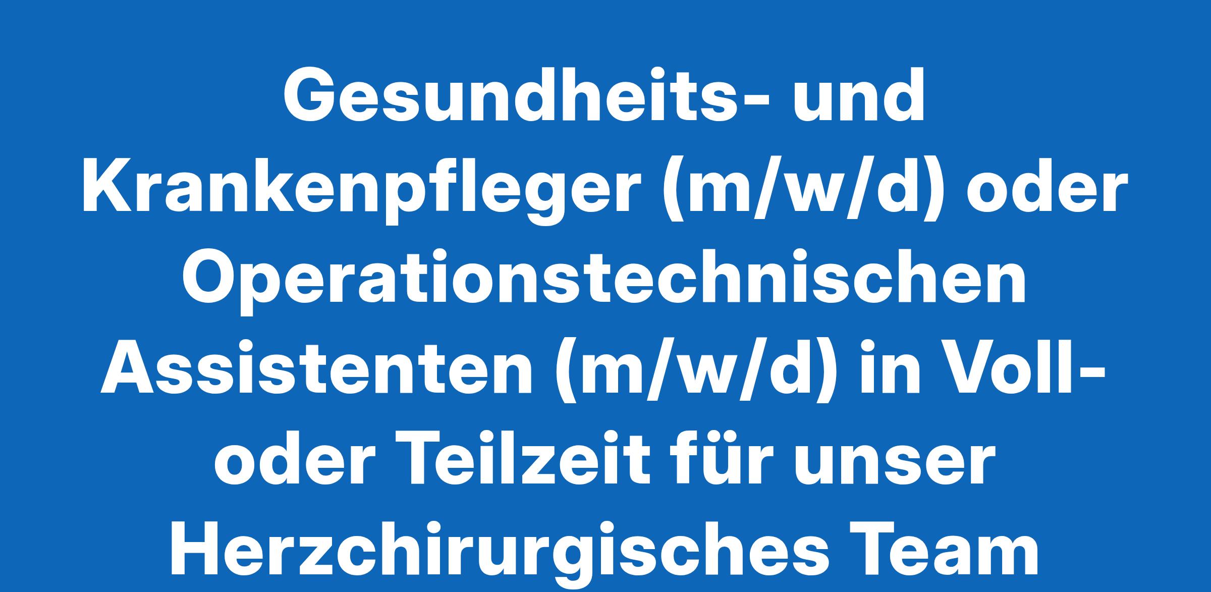 Gesundheits- und Krankenpfleger (m/w/d) oder Operationstechnischen Assistenten (m/w/d) in Voll- oder Teilzeit für unser Herzchirurgisches Team