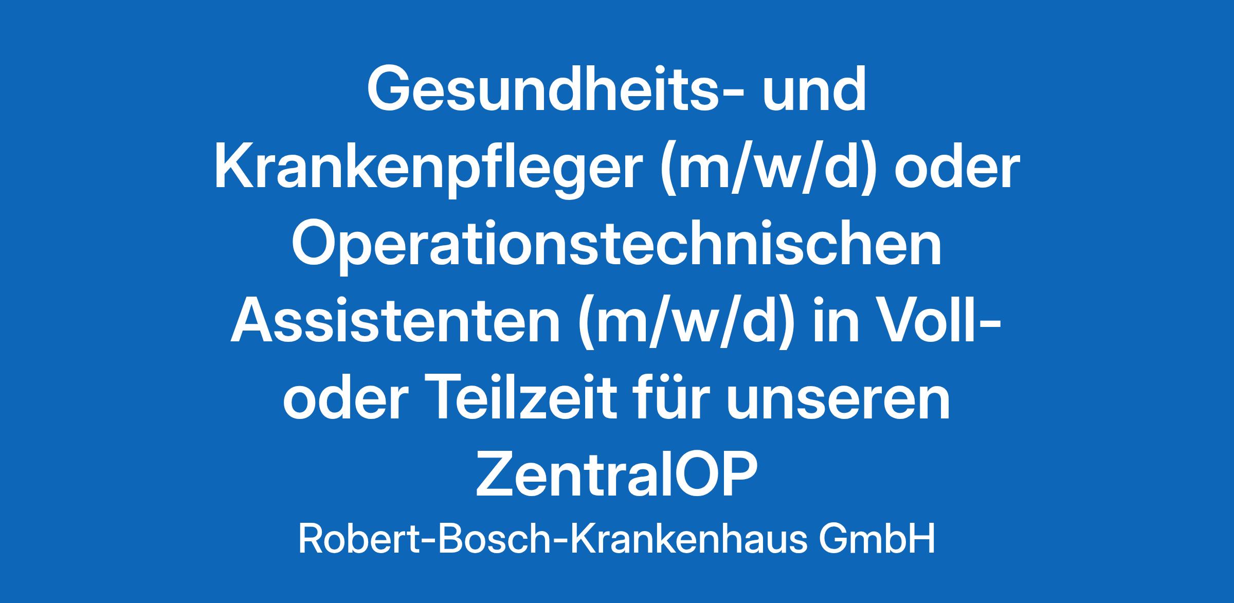 Das Robert-Bosch-Krankenhaus ist ein von der Robert Bosch Stiftung getragenes Krankenhaus der Zentralversorgung mit Funktionen der Maximalversorgung an drei Standorten. Mit 1.041 Betten nehmen das RBK, seine Standorte Klinik Charlottenhaus und RBK Lungenzentrum Stuttgart (Klinik Schillerhöhe) sowie die Klinik für Geriatrische Rehabilitation im Jahr bis zu 40.000 Patienten stationär auf. Zum Krankenhausbetrieb mit über 3.000 Mitarbeitenden gehören 17 Fachabteilungen in verschiedenen medizinischen Zentren, ein Bildungszentrum und Forschungsinstitute. Für Mitarbeitende bieten sich in dieser Struktur vielfältige Entwicklungsmöglichkeiten.